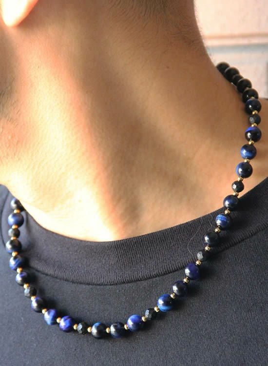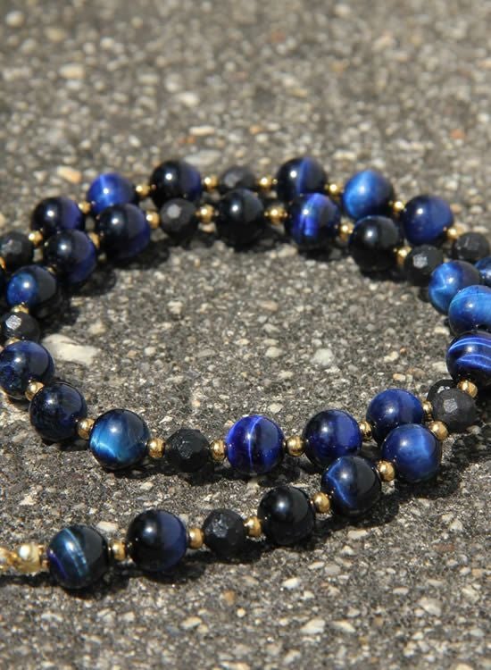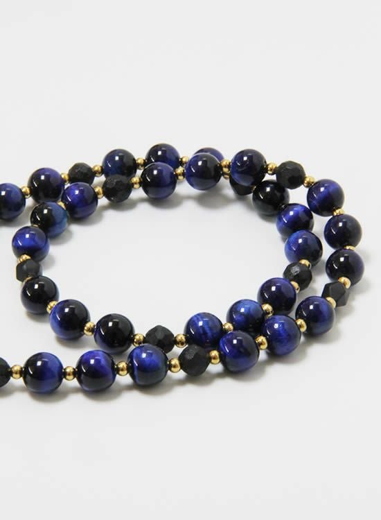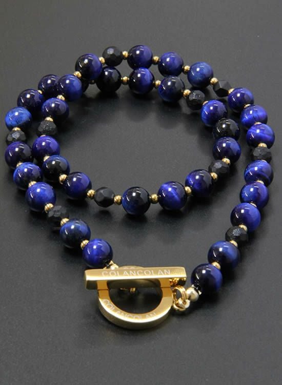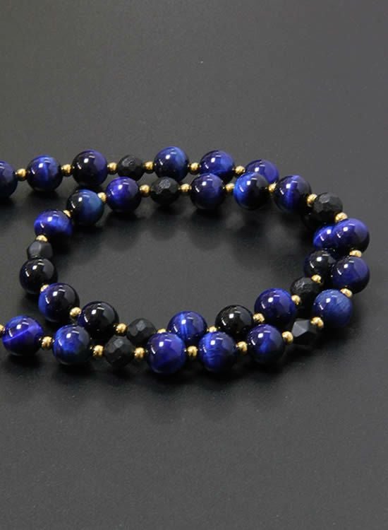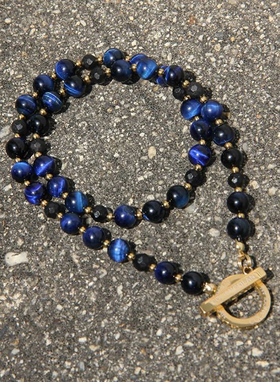 【COLANCOLANのFORCE3の新作】8mmネイビータイガーアイ(ゴールド・ブラック) ネックレス