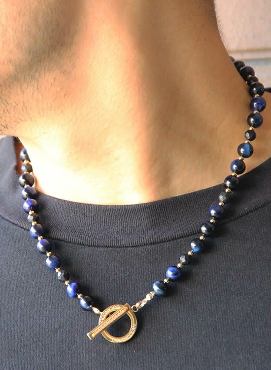 冬に向けて人気が出そうなネイビータイガーアイが登場です。ブルーと比較してもかなり落ち着いた大人なネックレスになると思います。大人しくなり過ぎないようにゴールドのパーツを合わせました。ブルーはちょっと派手だと感じるお客様はネイビーをおススメします。