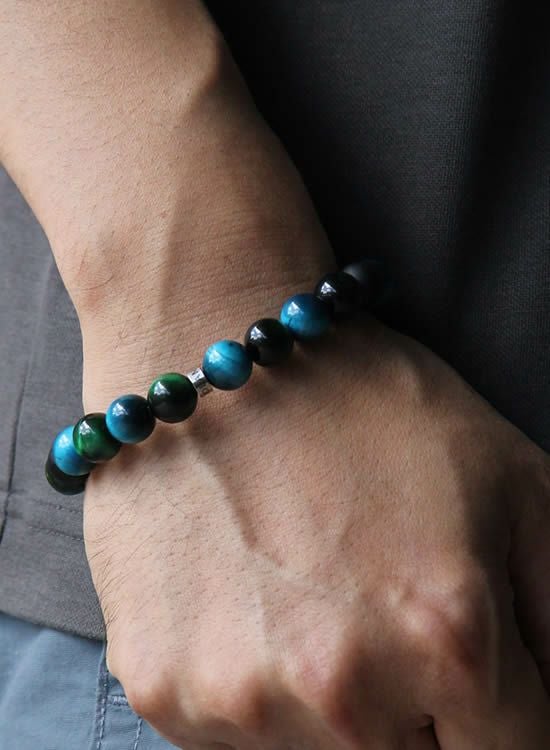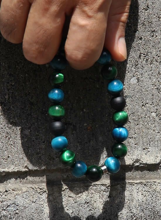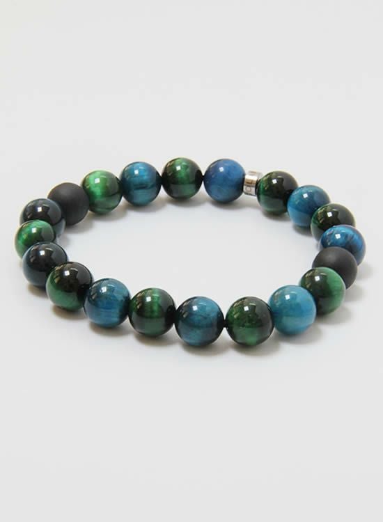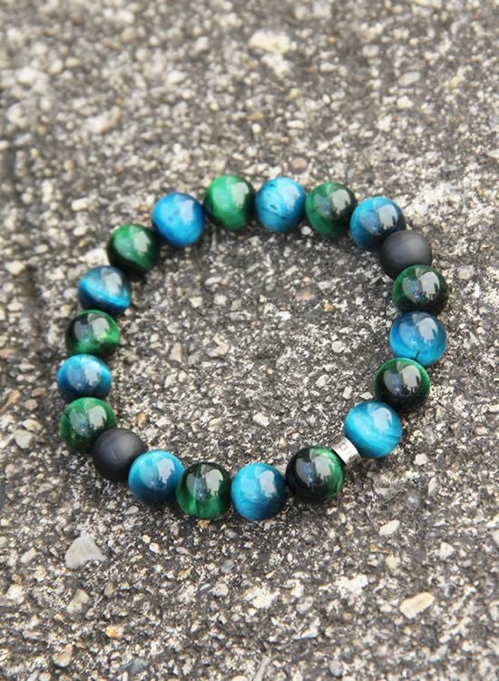FORCE4ブレスレット 10mmブルータイガーアイ&グリーンタイガーアイ 【伸ばして脱着するゴムを使ったブレスレット】