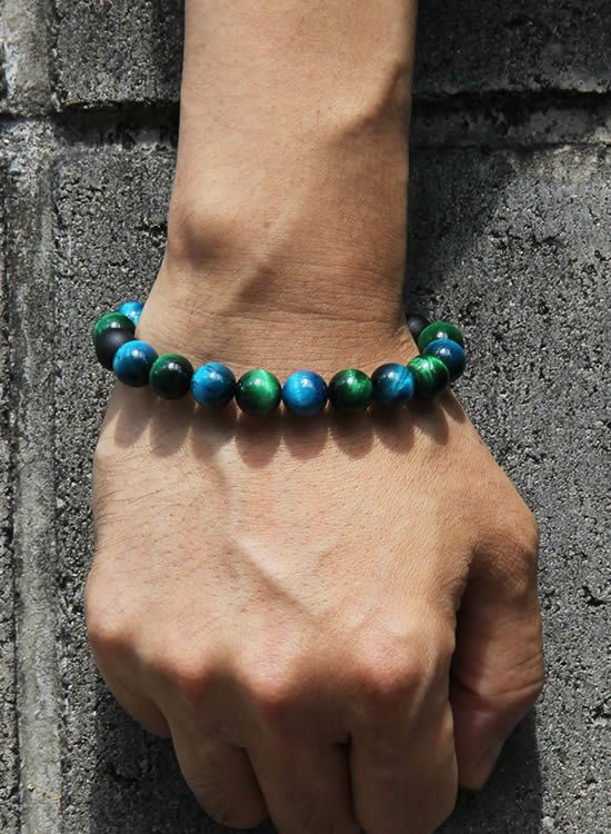【再入荷】【数量限定テスト販売】コランコランFORCE4(フォースフォー) 10mmブルータイガーアイ&グリーンタイガーアイ ブレスレット
