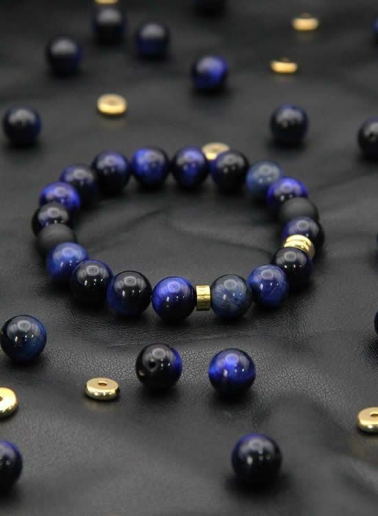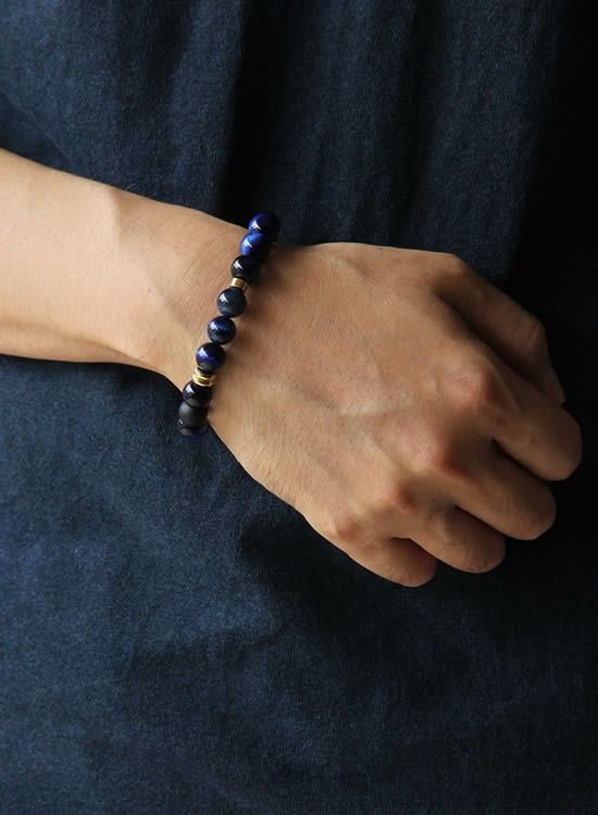 10mmのネイビータイガーアイをご用意しました。秋冬はこういう高級感があるカラーが着けたくなるんですよ!凄くキレイなネイビーなので冬のファッションにも合わせやすいと思います。