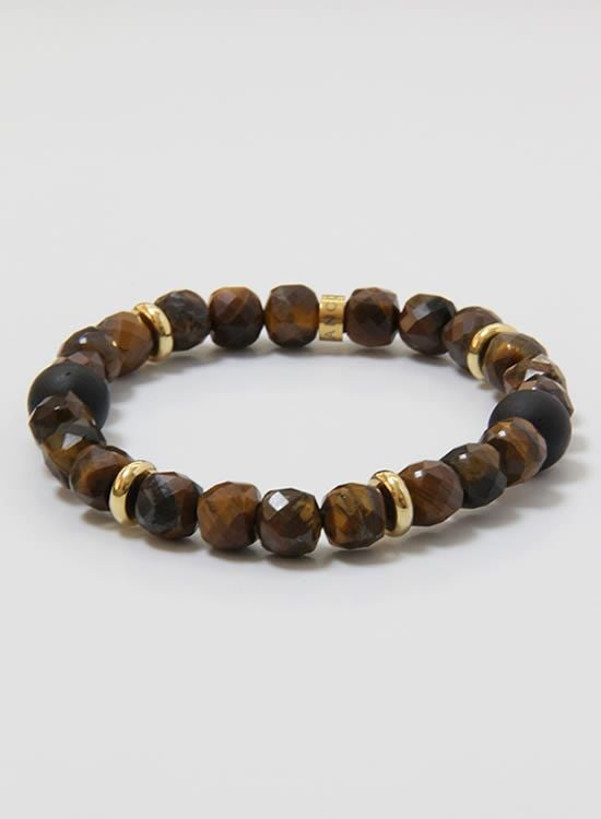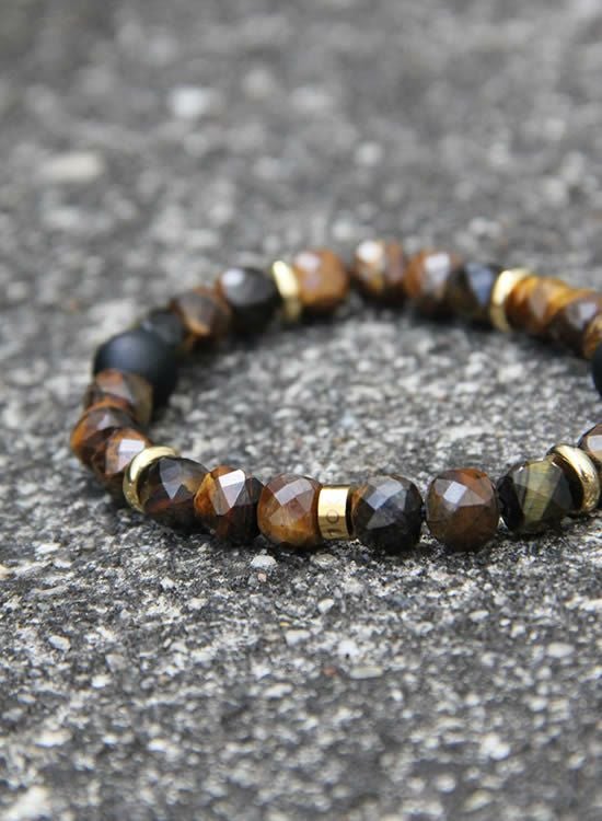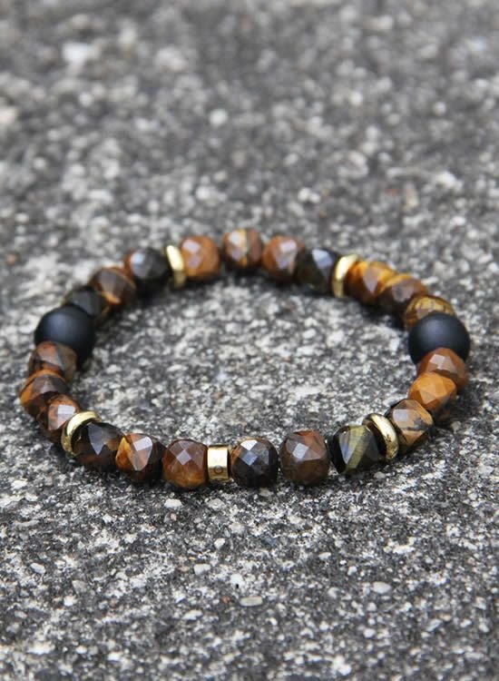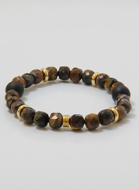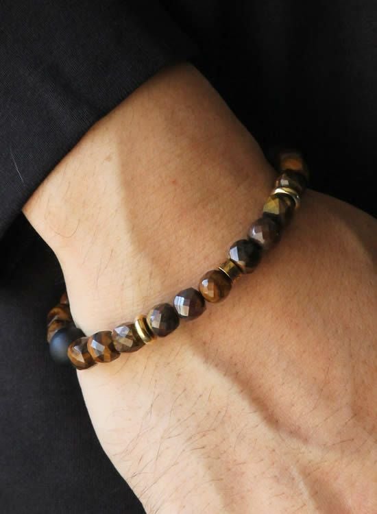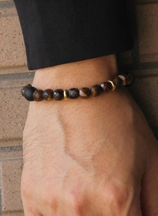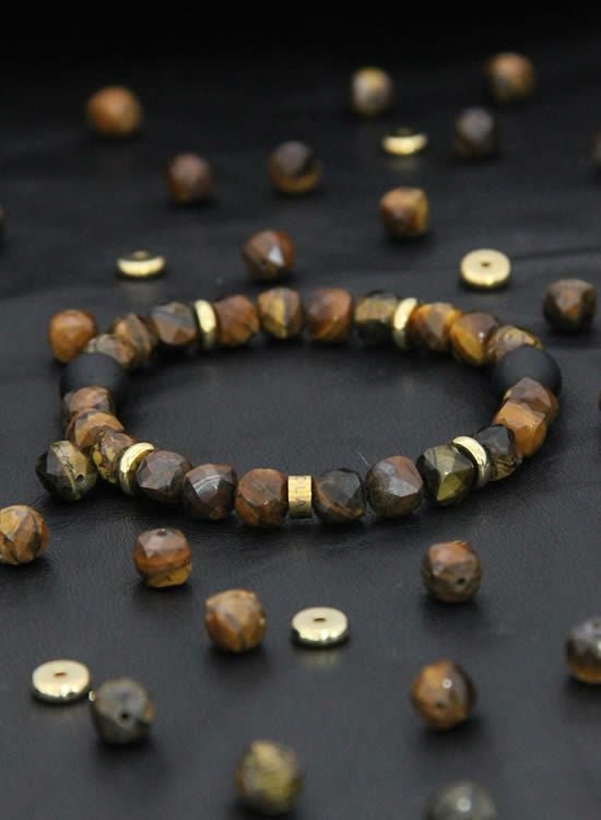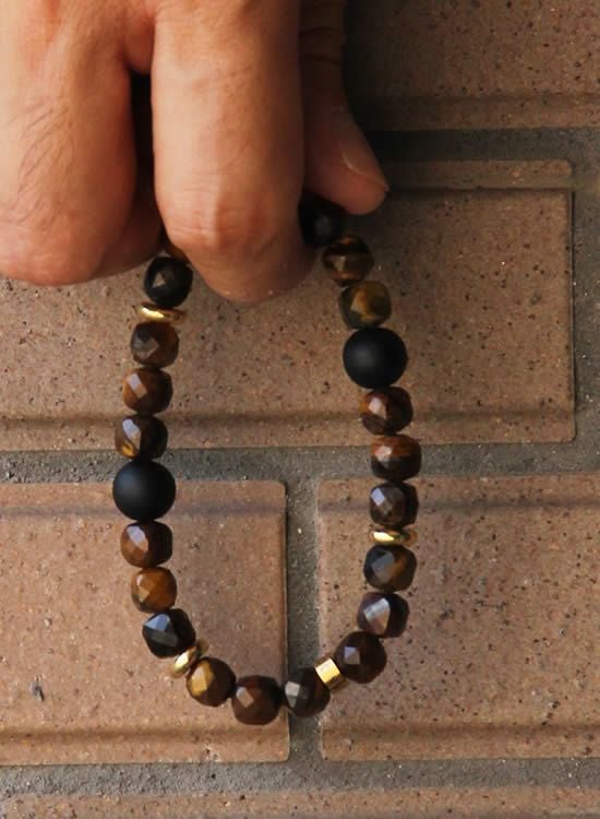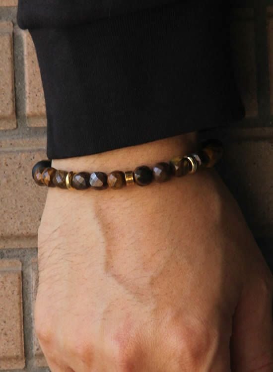 FORCE4ブレスレット 8mm多面体キューブ イエロータイガーアイ 【伸ばして脱着するゴムを使ったブレスレット】