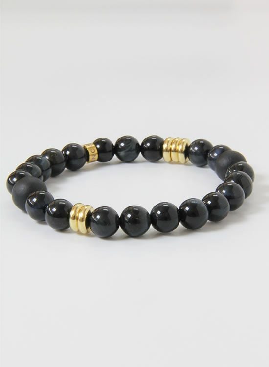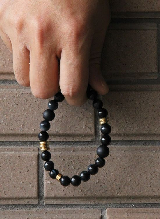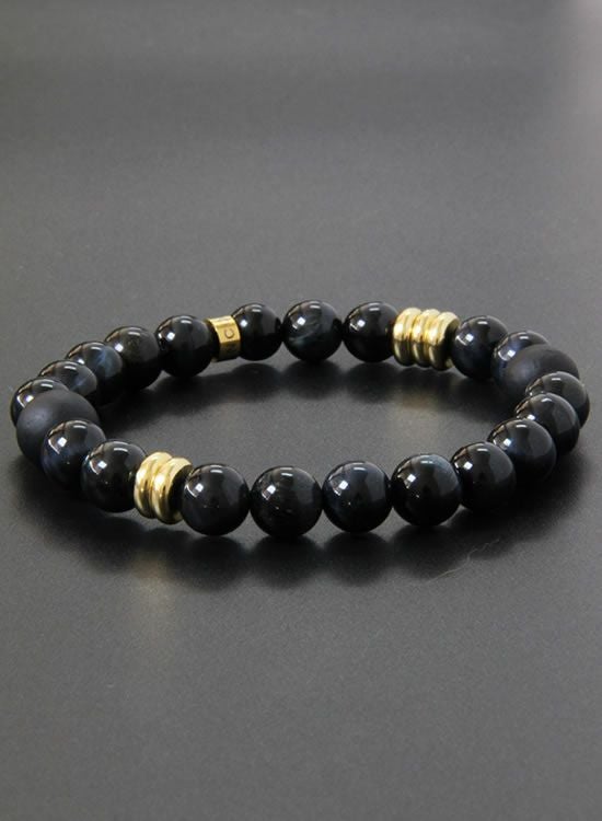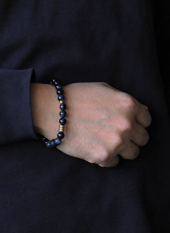 10mmブラックタイガーアイのブレスレットが凄く人気だったので、今回は8mm玉でのブレスレットをご用意しました。凄くキレイなブラックタイガーアイの黒の中にあるブルーの良さが消えないようになるべくシンプルな形状にしました。