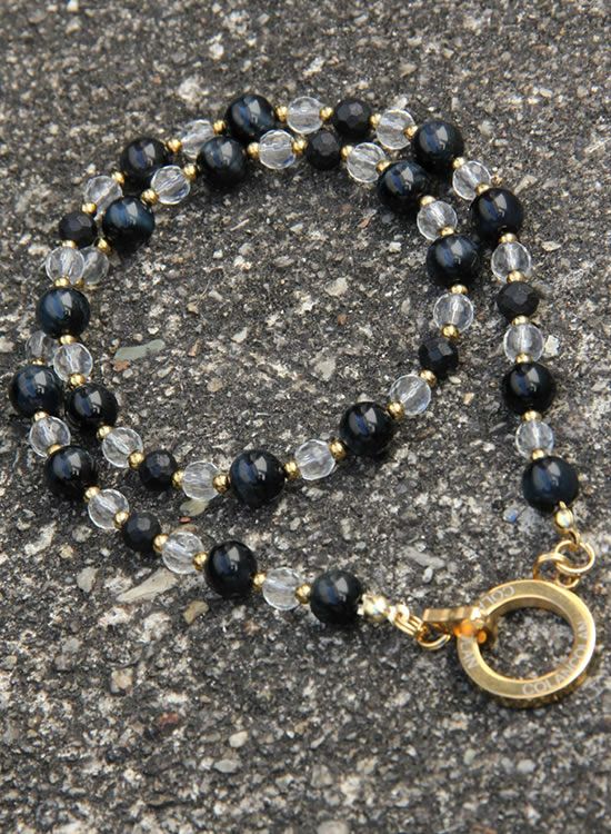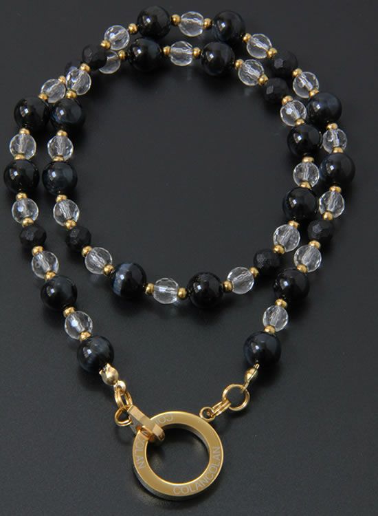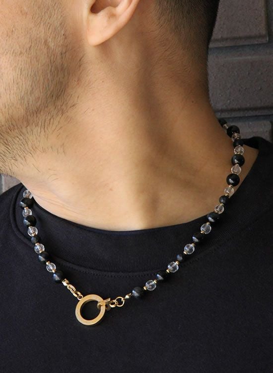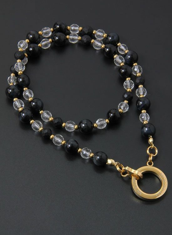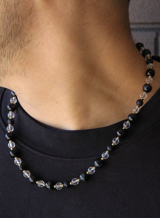 【新パーツ】【FORCE5】 8mmブラックタイガーアイ&水晶 (ゴールド・ブラック) ネックレス