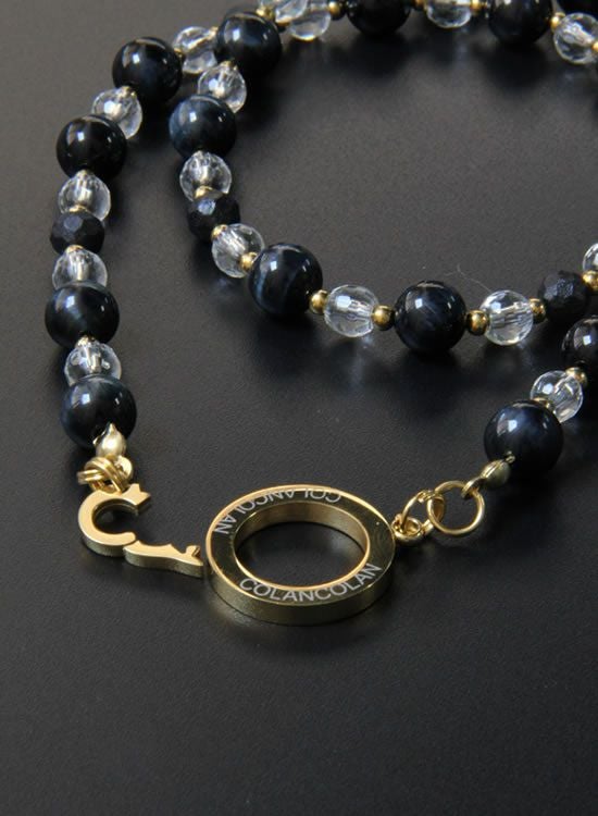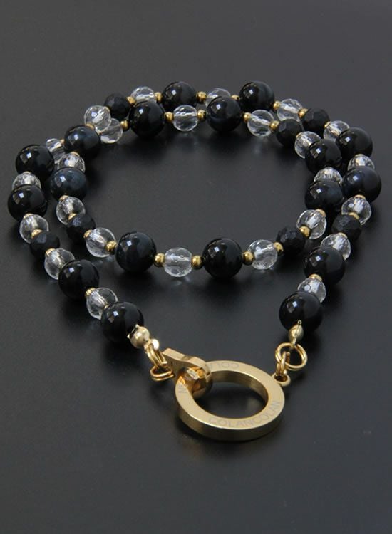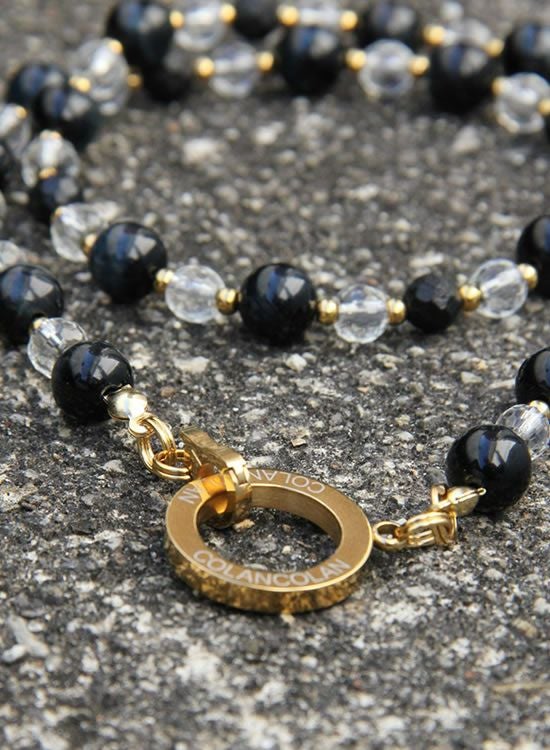 【再入荷】【数量限定テスト販売】コランコランFORCE5(フォースファイブ) 8mmブラックタイガーアイ&水晶 (ゴールド・ブラック) ネックレス 【送料無料】