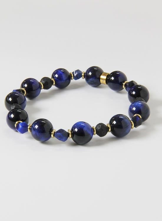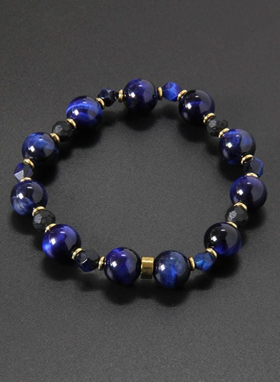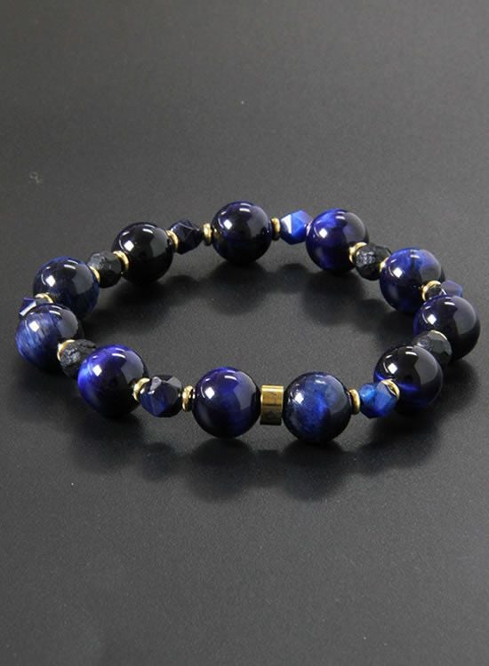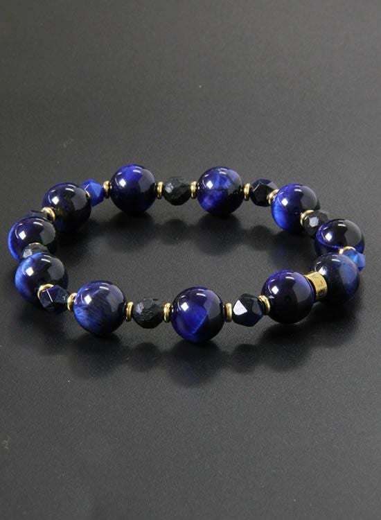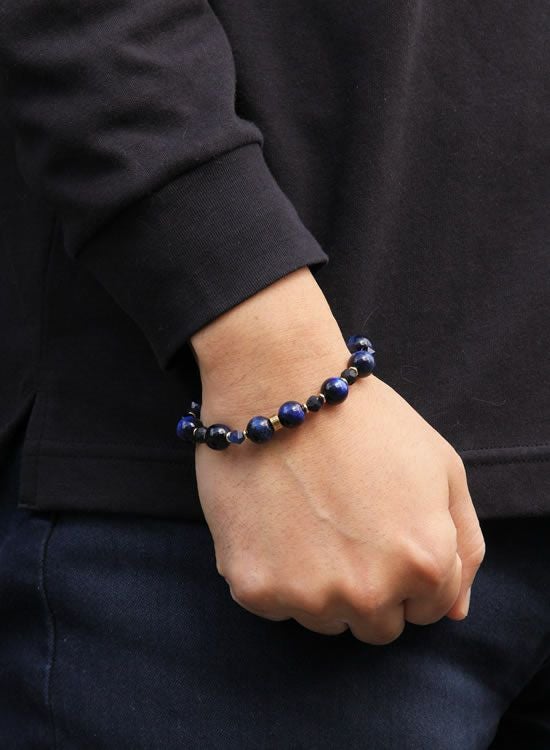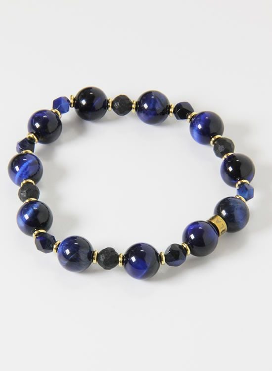 FORCE3 ブレスレット 10mmネイビータイガーアイ&6mm角ネイビータイガーアイ ゴムタイプ
