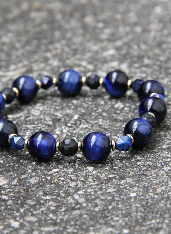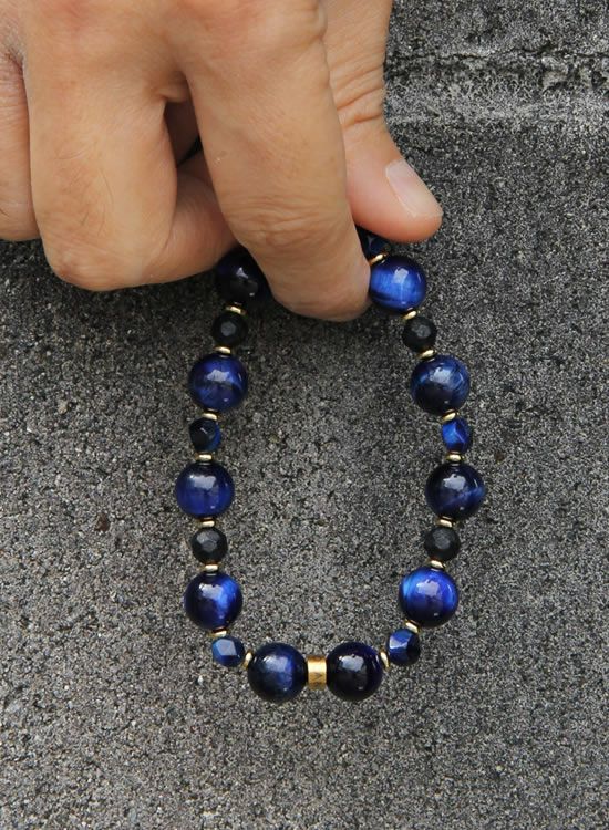 コランコラン公式で扱っているネイビータイガーアイは凄くキレイな石ですが、ブルータイガーアイが凄く人気過ぎなので、ネイビータイガーの魅力をなんとか表現しようと思い6mm角ネイビータイガーと合わせてブレスレットを組んでみました。ゴールドのパーツとの相性も良くて一年通して活躍してくれそうなブレスレットです。
