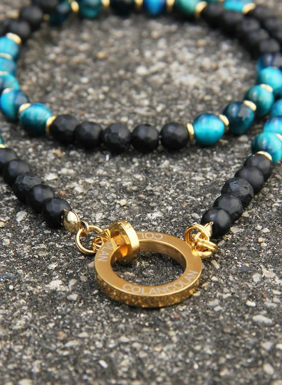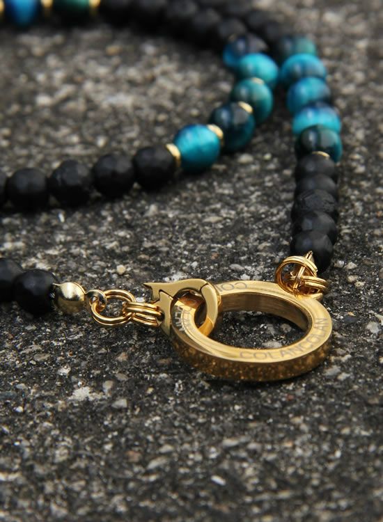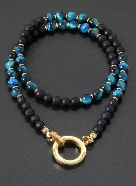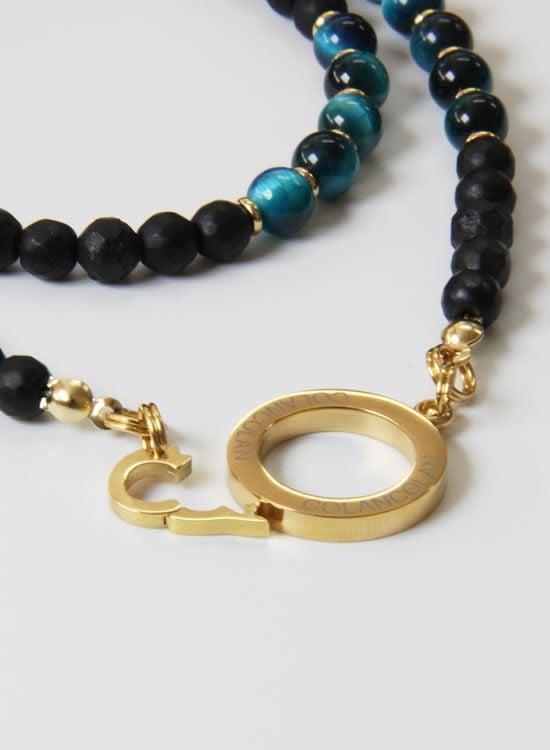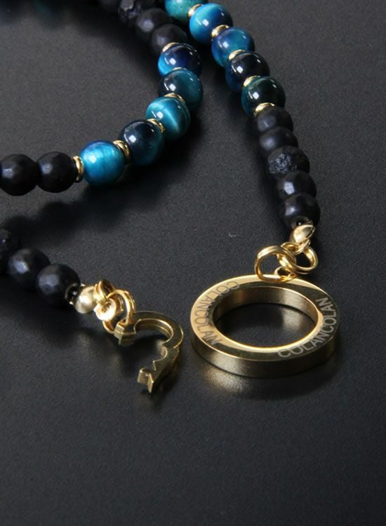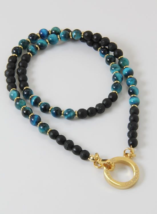 【再入荷】【数量限定テスト販売】コランコランFORCE5(フォースファイブ) 6mmブルータイガーアイ (ゴールド・ブラック) ネックレス 【送料無料】