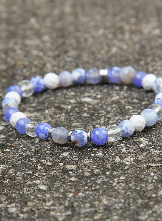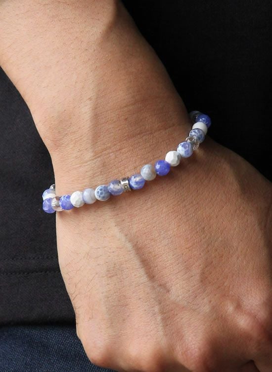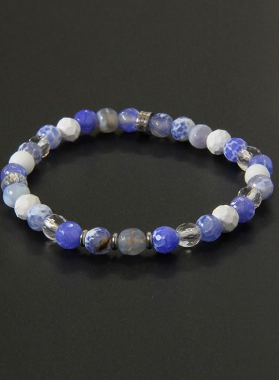 FORCE3 ブレスレット 6mmブルーファイヤーアゲート&水晶 ゴムタイプ