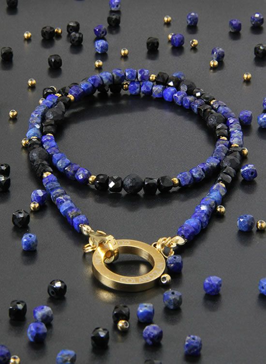 【再入荷】【数量限定テスト販売】コランコランFORCE5(フォースファイブ) 4mmラピスラズリ&ブラックスピネル (ゴールド・ブラック) ネックレス 【送料無料】