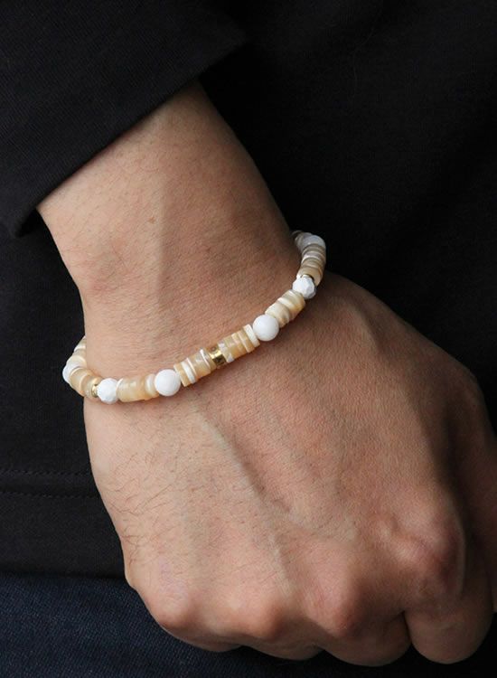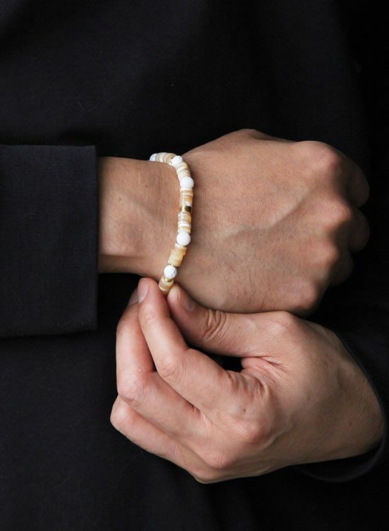 春夏に向けて新たに『貝ビーズ』をブレスレットにしてみました~!!メチャクチャ夏っぽい!!すっごく爽やかでいいと思います。6mmって所がまたシンプルで凄くいいんです。貝ビーズの魅力を楽しんで頂ければ嬉しいです!!