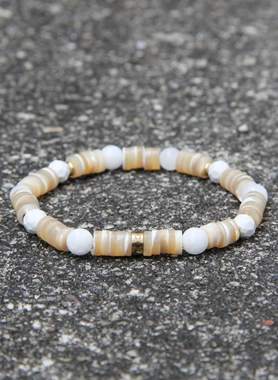 FORCE3 ブレスレット 6mm 貝ビーズ ゴムタイプ