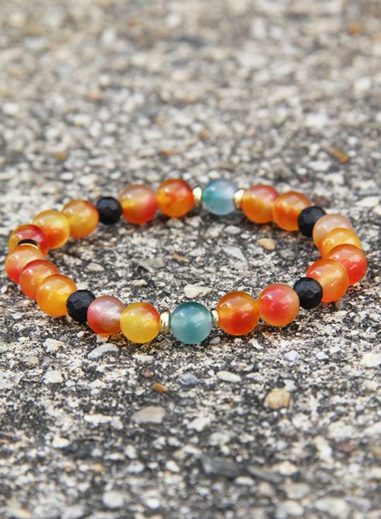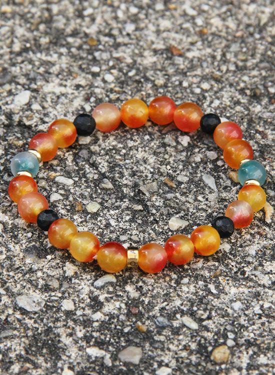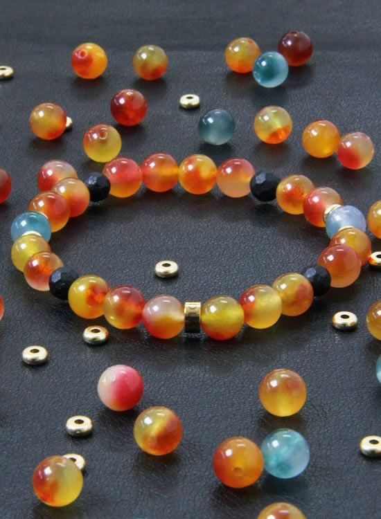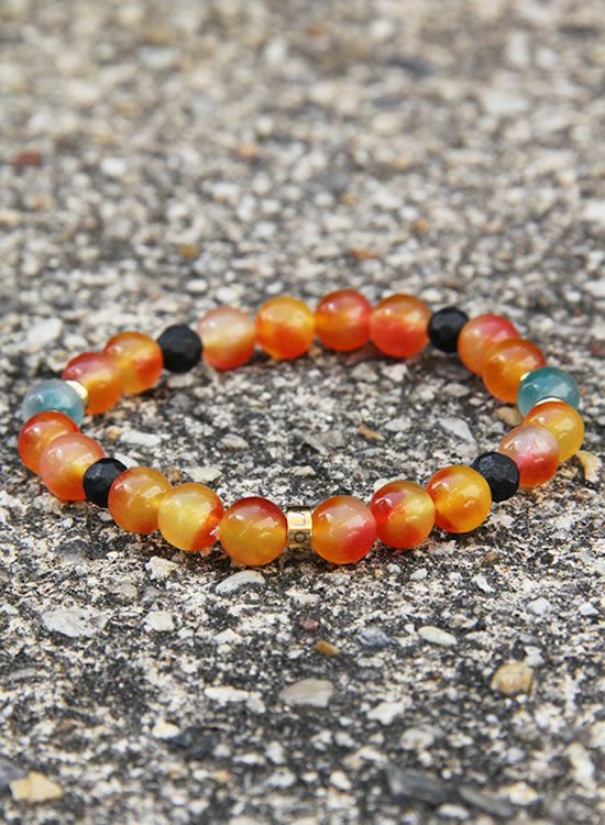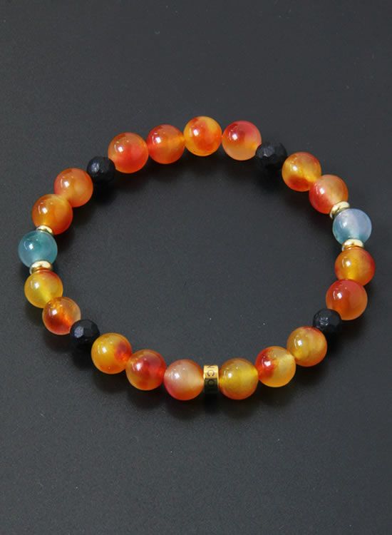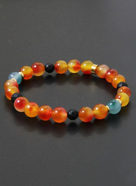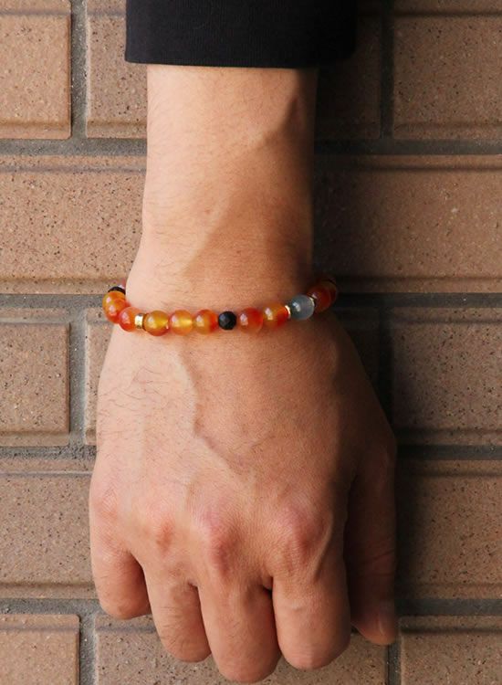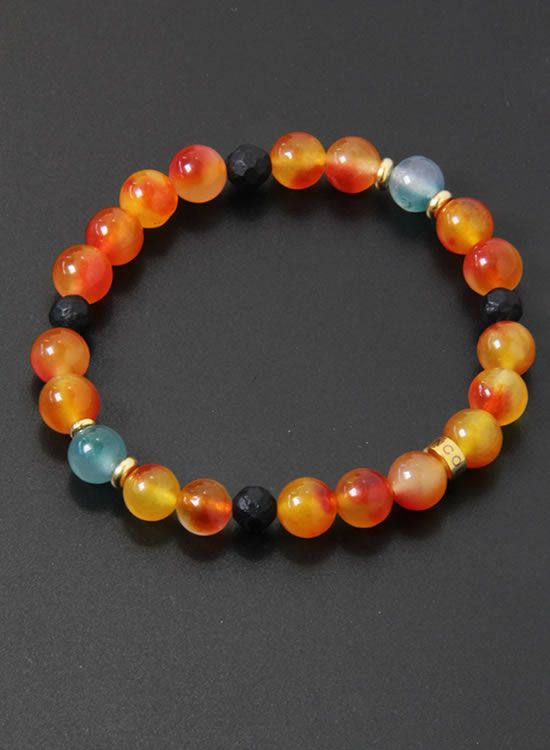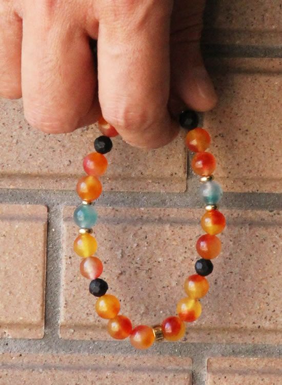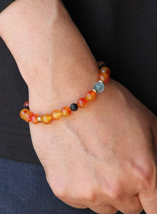 FORCE3 ブレスレット 8mm翡翠オレンジ ゴムタイプ