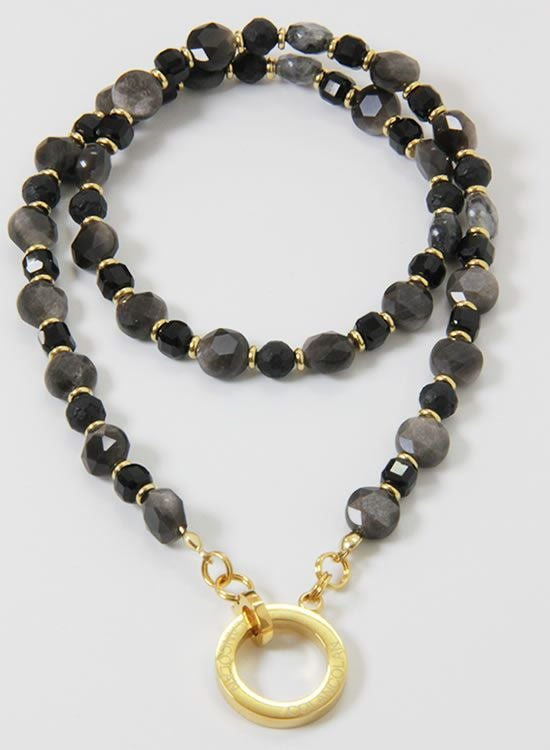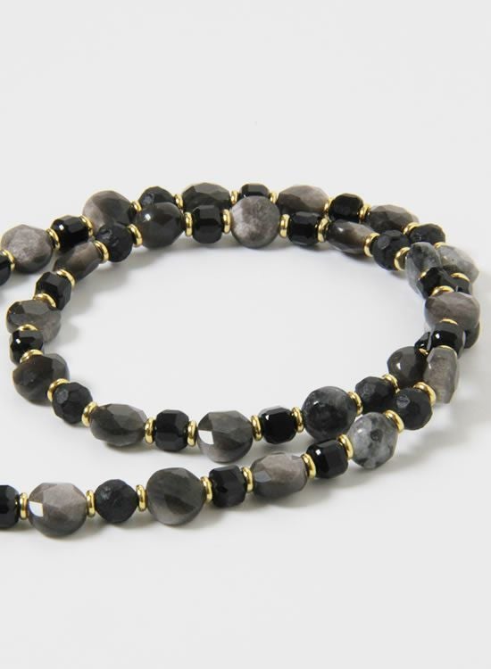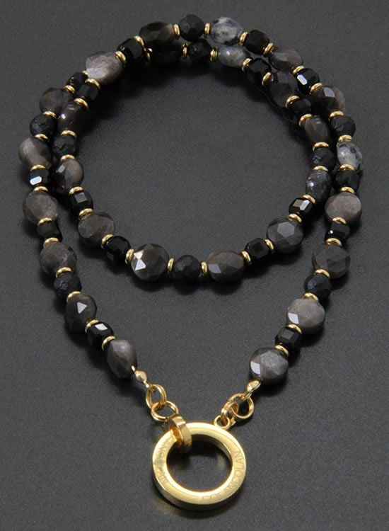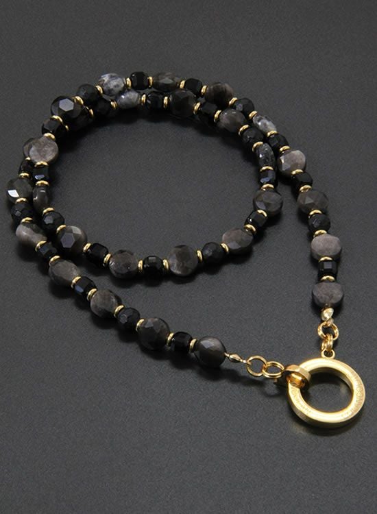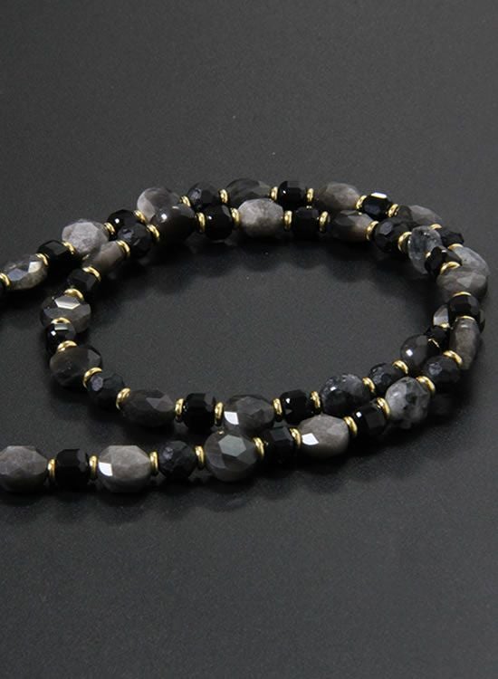 【新パーツ】【FORCE5】 8mmファセット多面カット ラルビカイト (ゴールド・ブラック) ネックレス