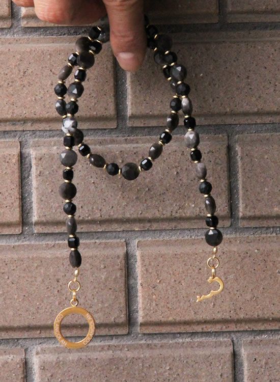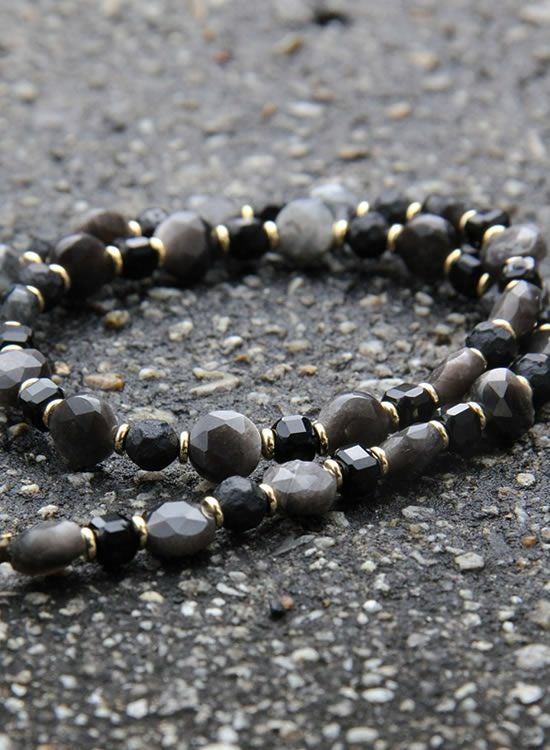 ファセット多面カットをネックレスにしてみました。多面カットのネックレスも全然いい!すごくいい!丸と違ってカット面がキラキラ光るので今回のラルビカイトのようなグレーの石でも陽射しが当たるとキラキラするのが特徴です。丸玉ネックレスに飽きたら多面体ネックレスおすすめです。
