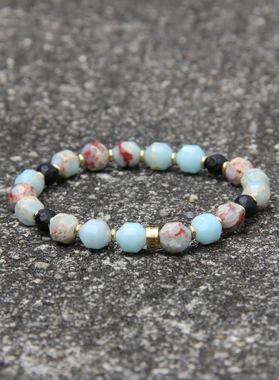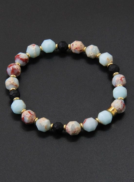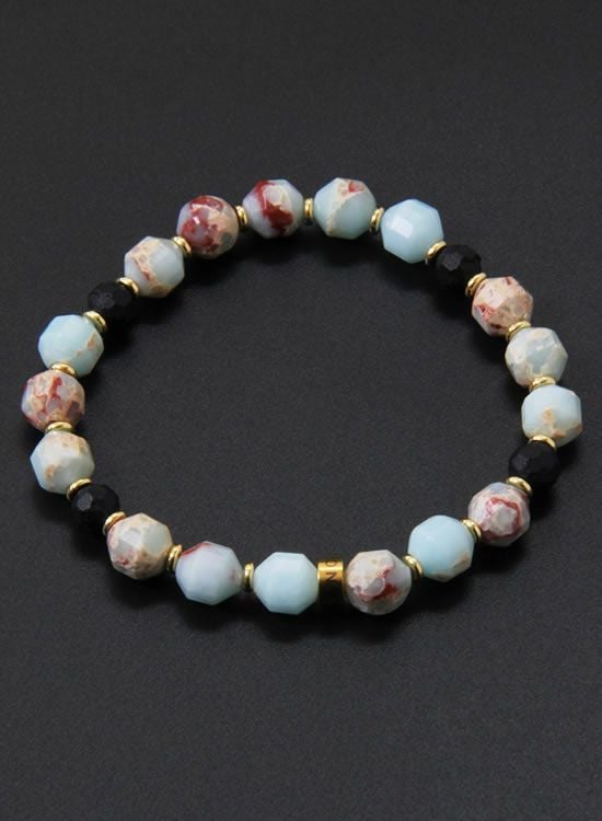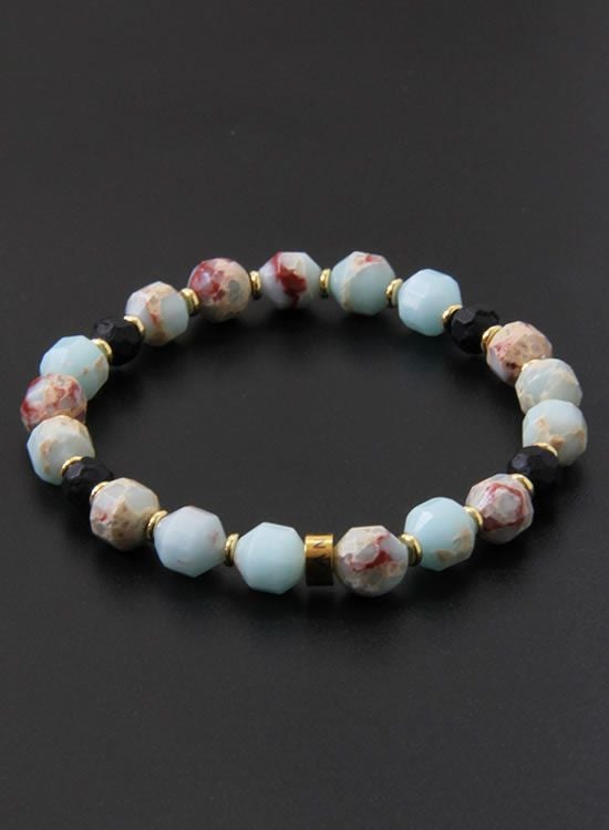 FORCE3 ブレスレット 8mmオーバル多面カット インペリアルジャスパー ゴムタイプ