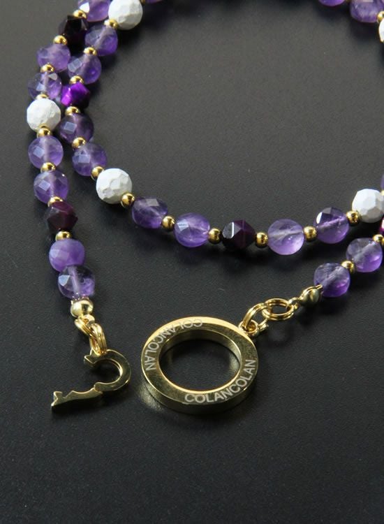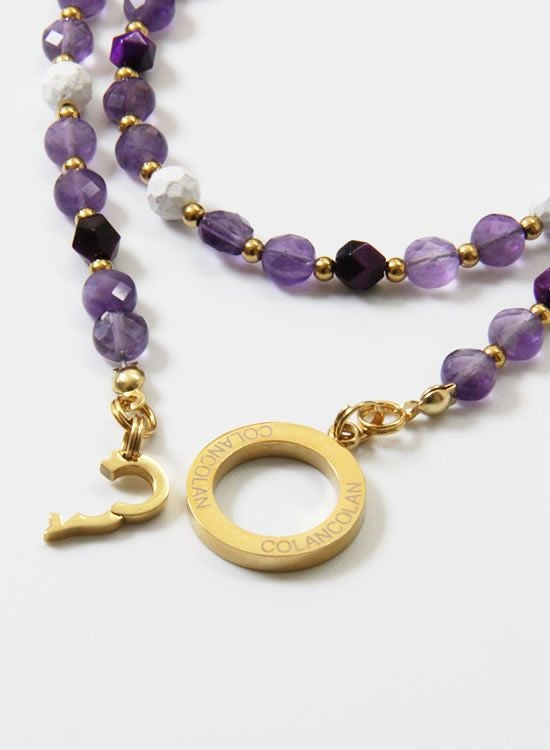 【再入荷】【数量限定テスト販売】コランコランFORCE5(フォースファイブ) 6mmファセット多面カット アメジスト (ゴールド・ホワイト) ネックレス 【送料無料】