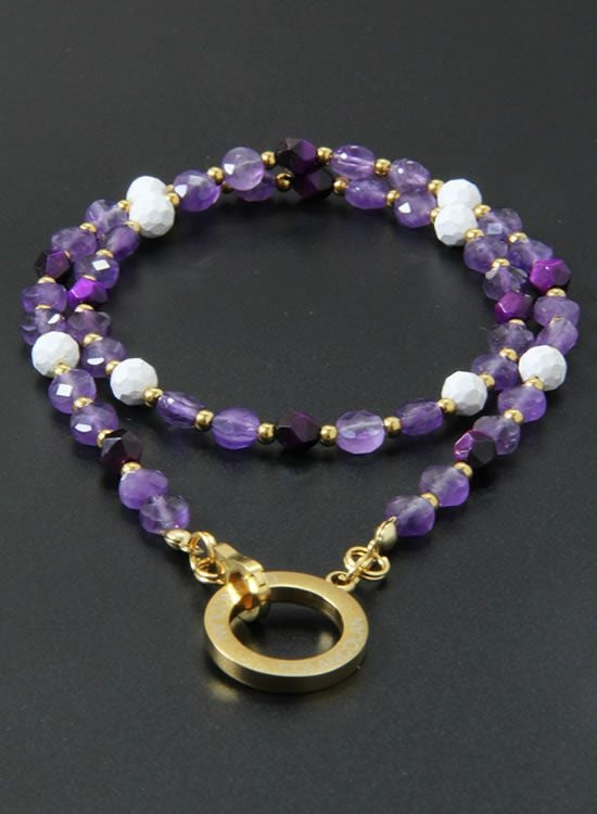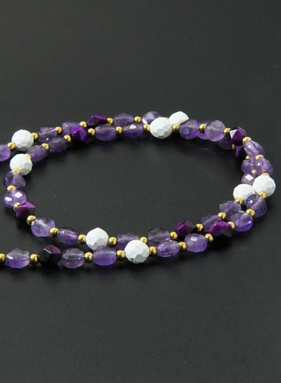【新パーツ】【FORCE5】 6mmファセット多面カット アメジスト (ゴールド・ホワイト) ネックレス