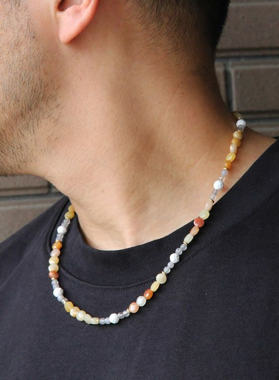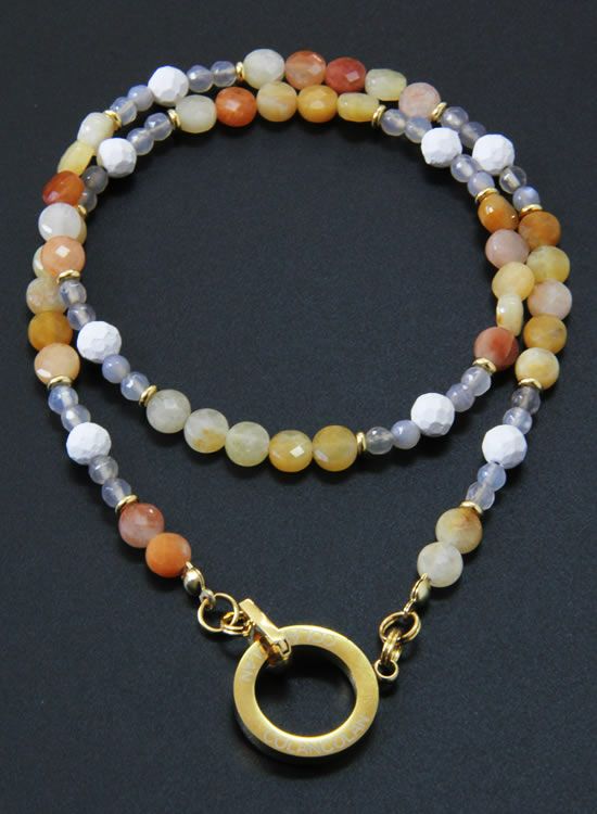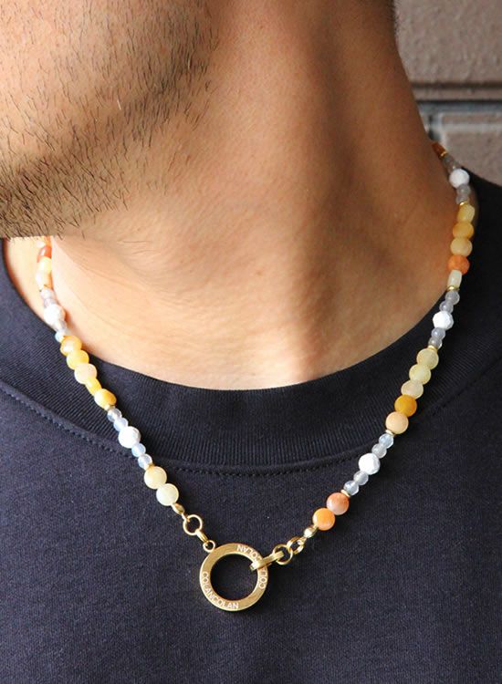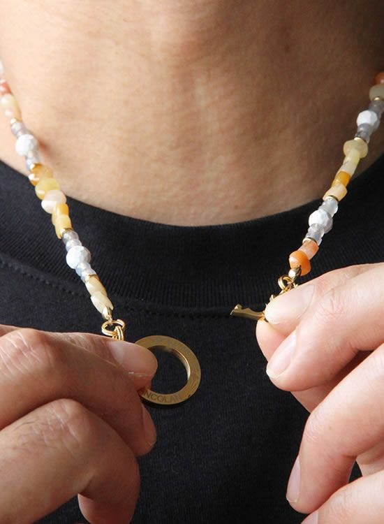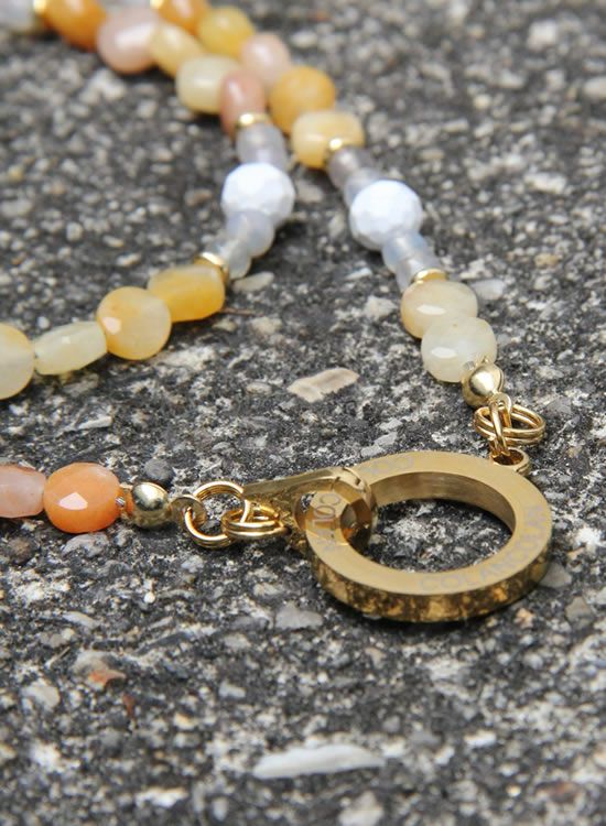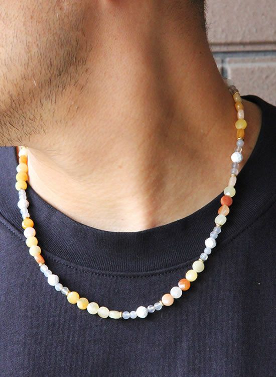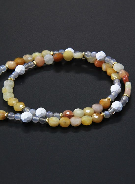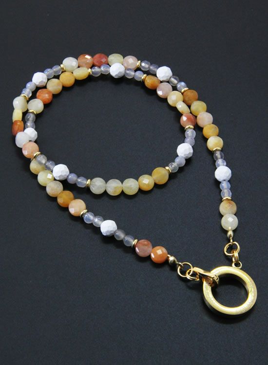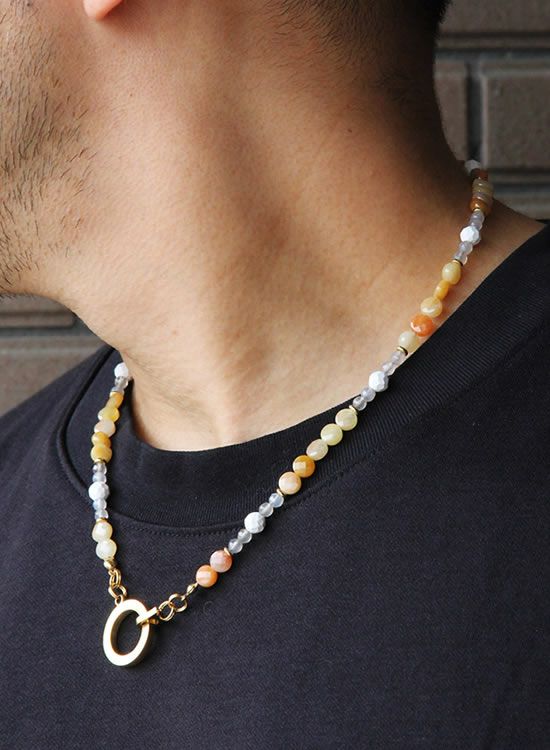 コレ!イエロー系の爽やかな石探してたんですよ!翡翠イエロー!すっごくキレイで直ぐ採用しちゃいました。夏はこういう爽やかなアクセを着けたくなるんですよねぇ~。ファセット多面カットなのでキラキラの仕方が変わって凄く良い!!4mmのグレーアゲートを入ってるのもデザインのポイントなのでチェックしてみて!!