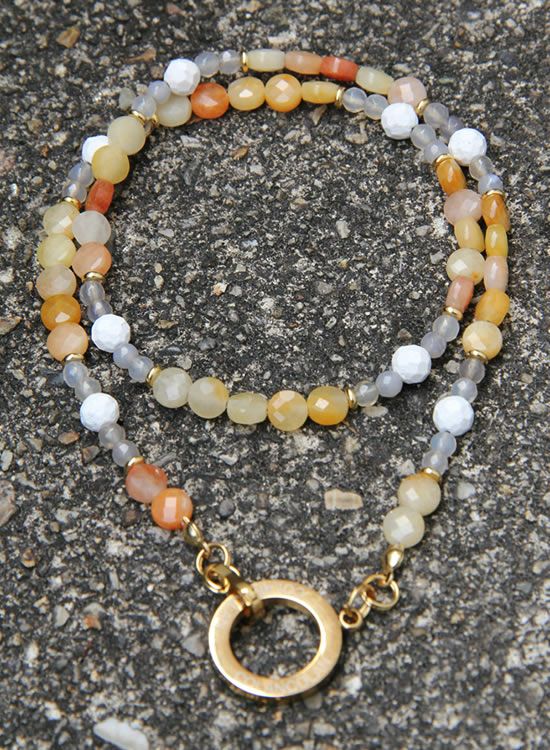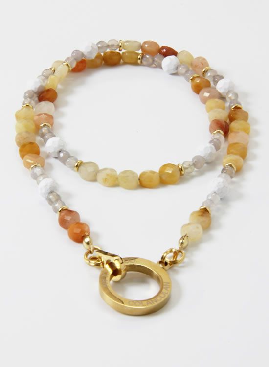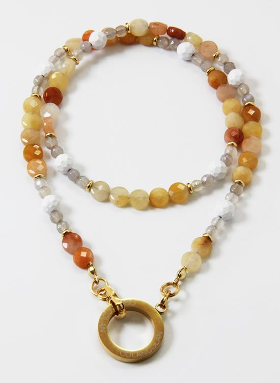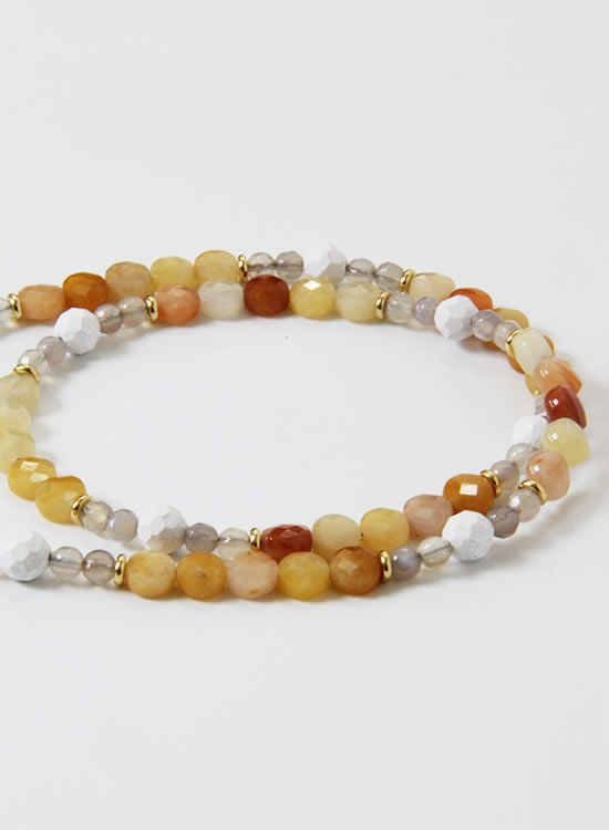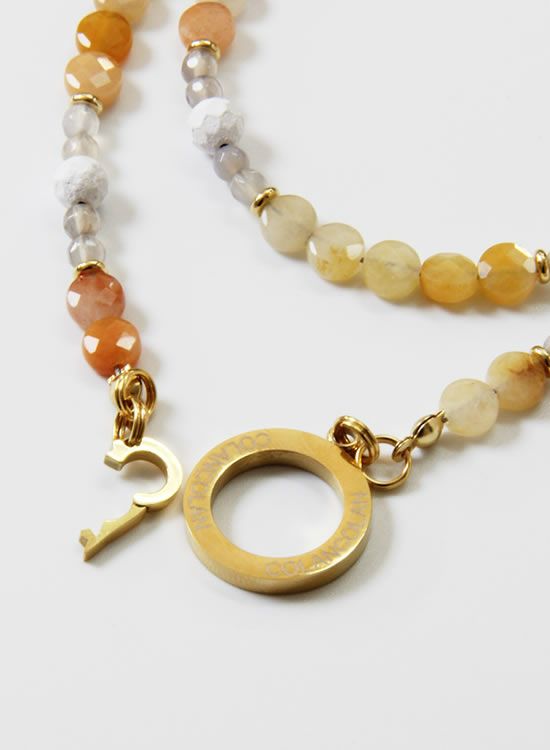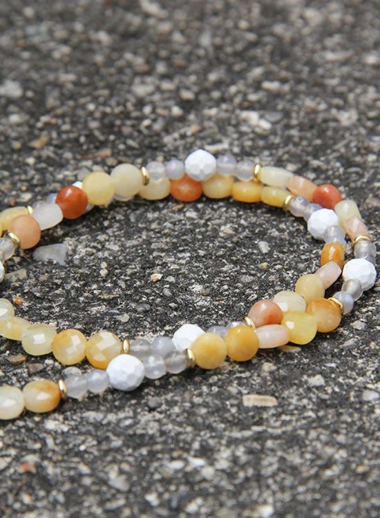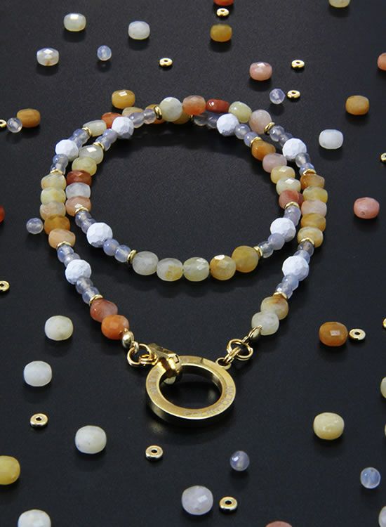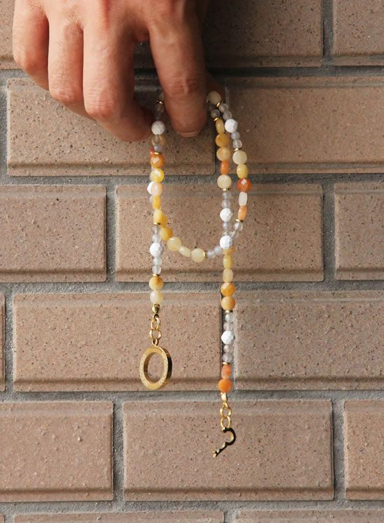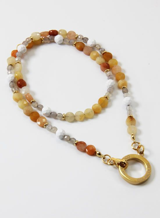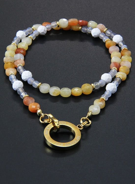 コレ!イエロー系の爽やかな石探してたんですよ!翡翠イエロー!すっごくキレイで直ぐ採用しちゃいました。夏はこういう爽やかなアクセを着けたくなるんですよねぇ~。ファセット多面カットなのでキラキラの仕方が変わって凄く良い!!4mmのグレーアゲートを入ってるのもデザインのポイントなのでチェックしてみて!!
