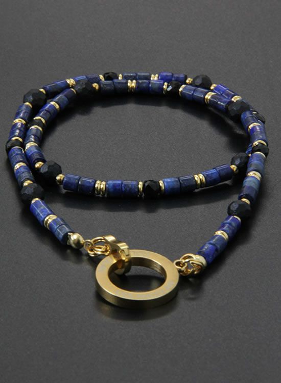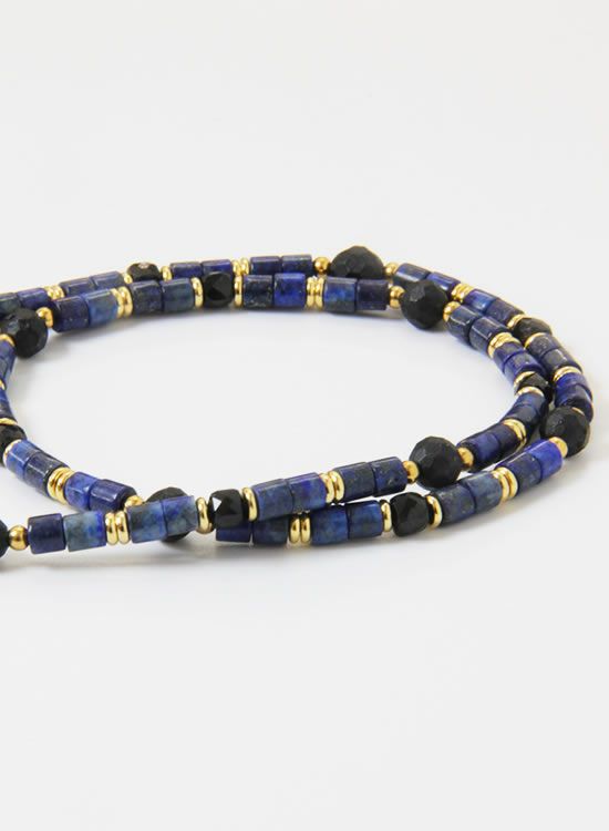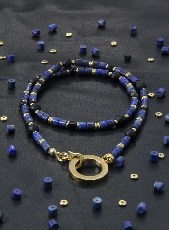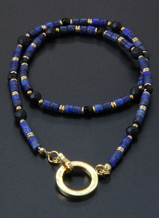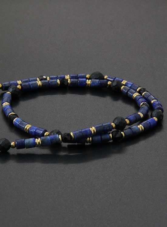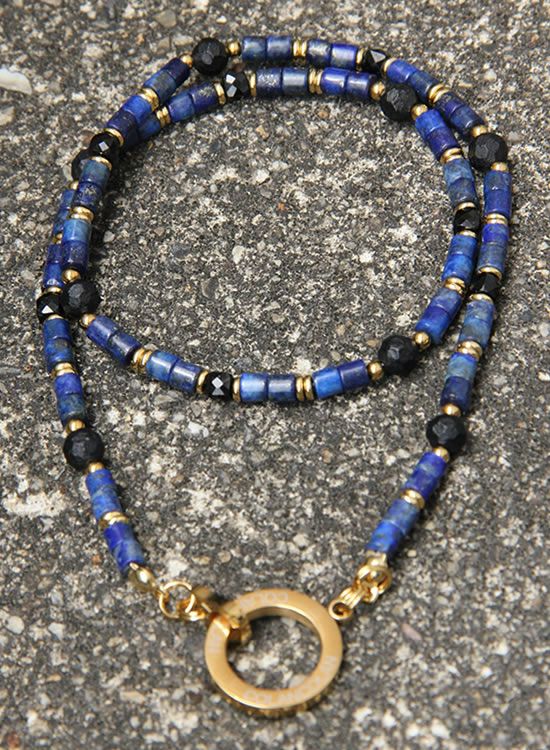 【新パーツ】【FORCE5】 4mm円柱 ラピスラズリ (ゴールド・ブラック) ネックレス