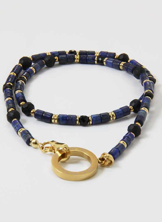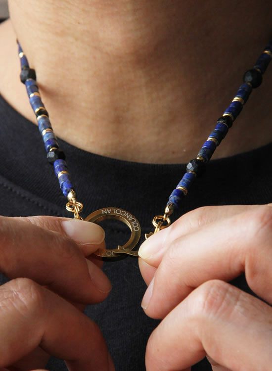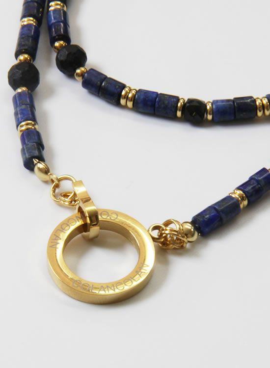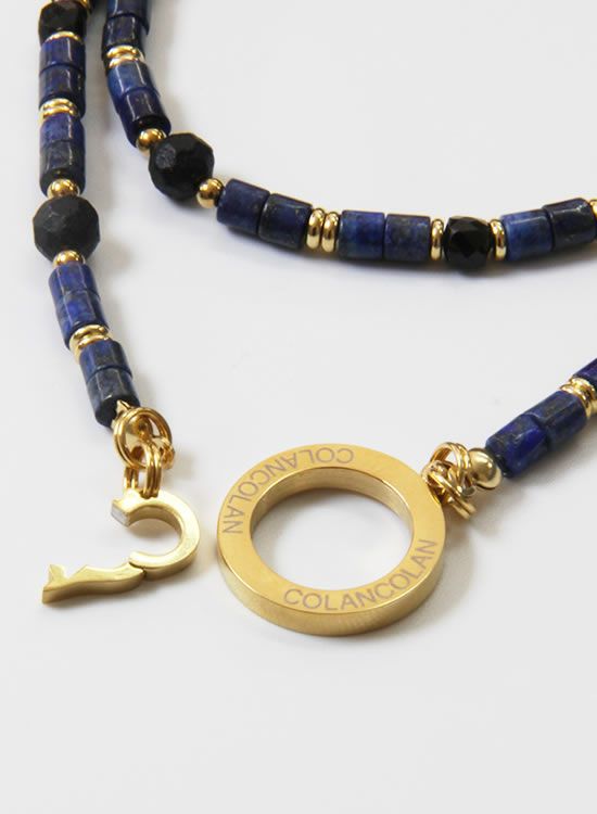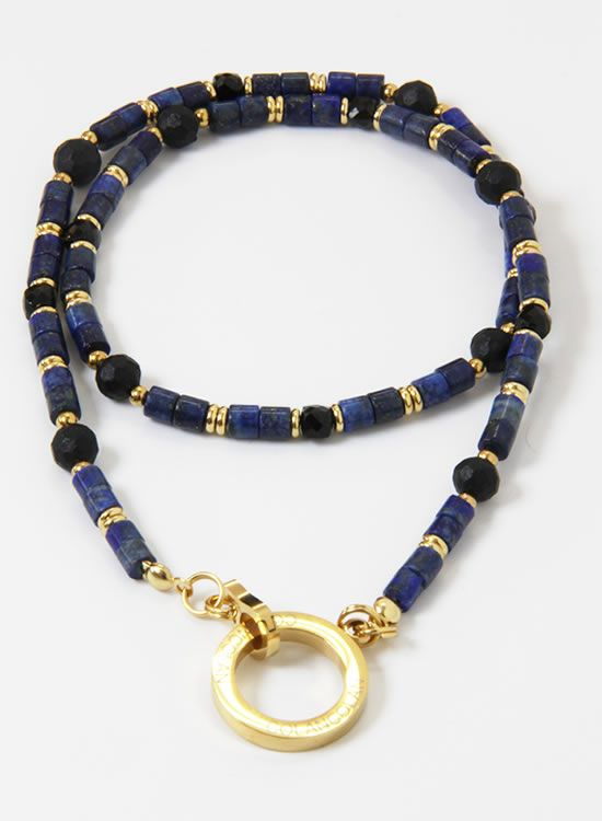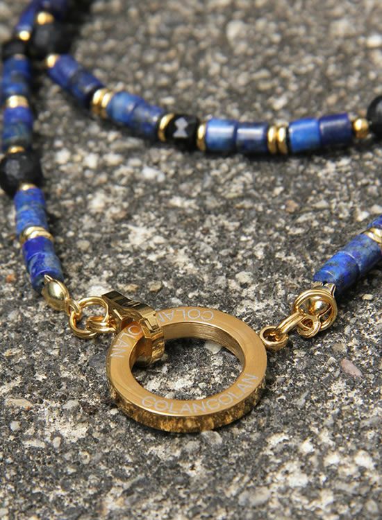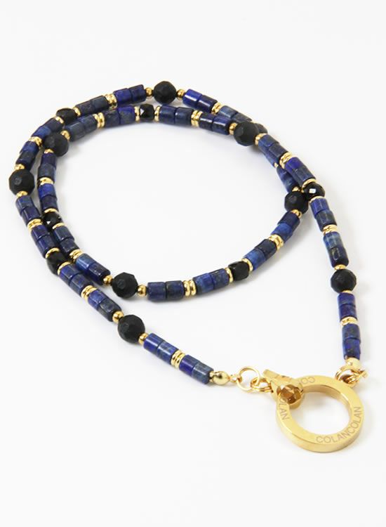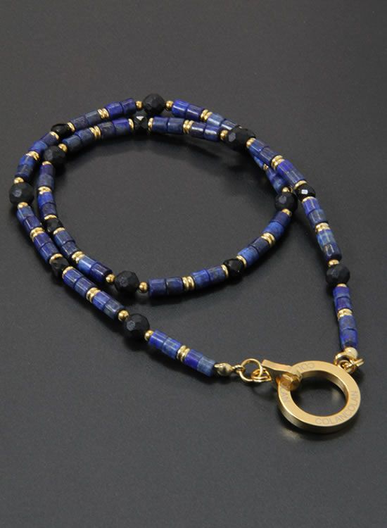【再入荷】【数量限定テスト販売】コランコランFORCE5(フォースファイブ) 4mm円柱 ラピスラズリ (ゴールド・ブラック) ネックレス 【送料無料】