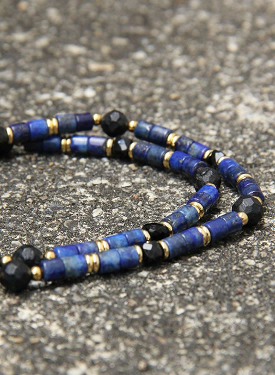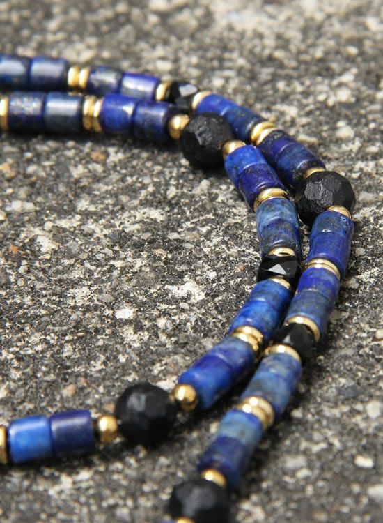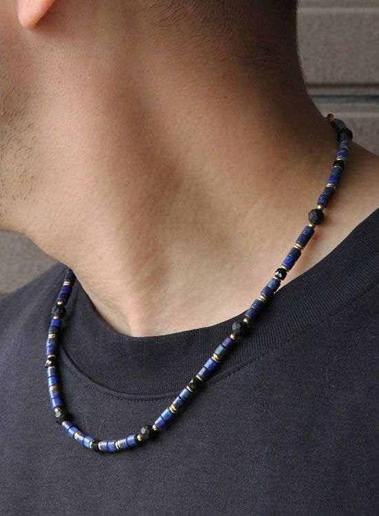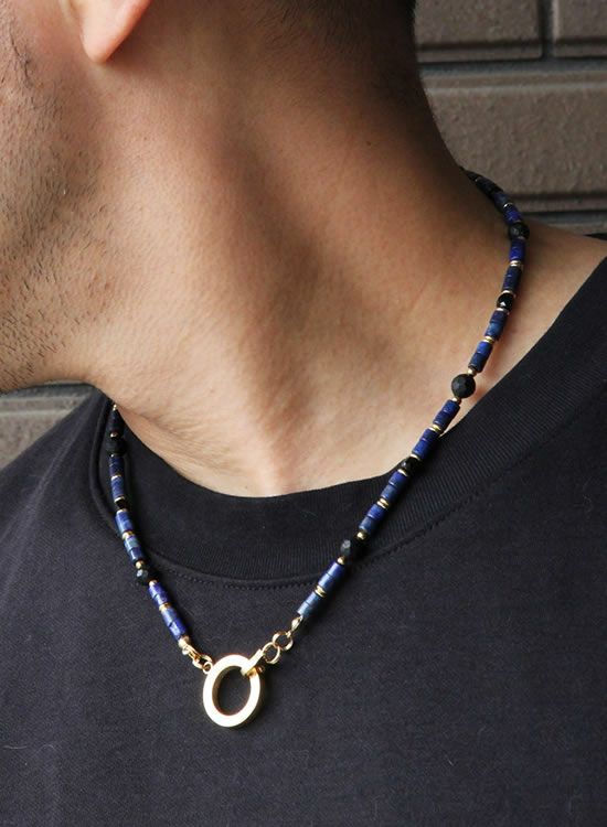 4mmの細めネックレスはいかがでしょうか?今回は円柱タイプのラピスラズリを採用いたしました。ラピスラズリのネイビーとゴールドのパーツが相性抜群でお気に入りです。存在感はあるけど細い所がすごくカッコイイ!