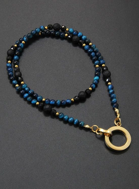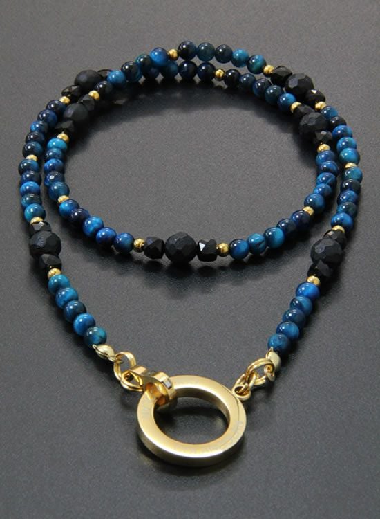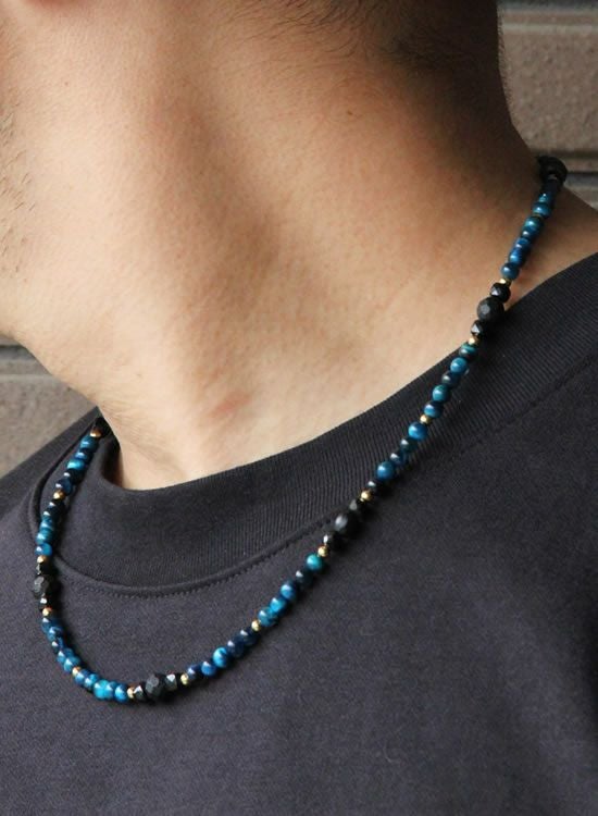 【新パーツ】【FORCE5】 4mmブルータイガーアイ (ゴールド・ブラック) ネックレス