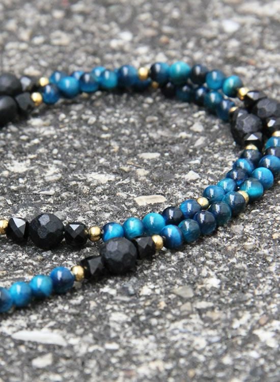 【4mmブルータイガーアイ】を採用しました。もうね。4mmのブルータイガーを初めて見た瞬間に『あっ!コレはカッコイイ!』でした。今までで1番小さい4mm玉のブルータイガーアイの魅力を手に取って見て欲しい。