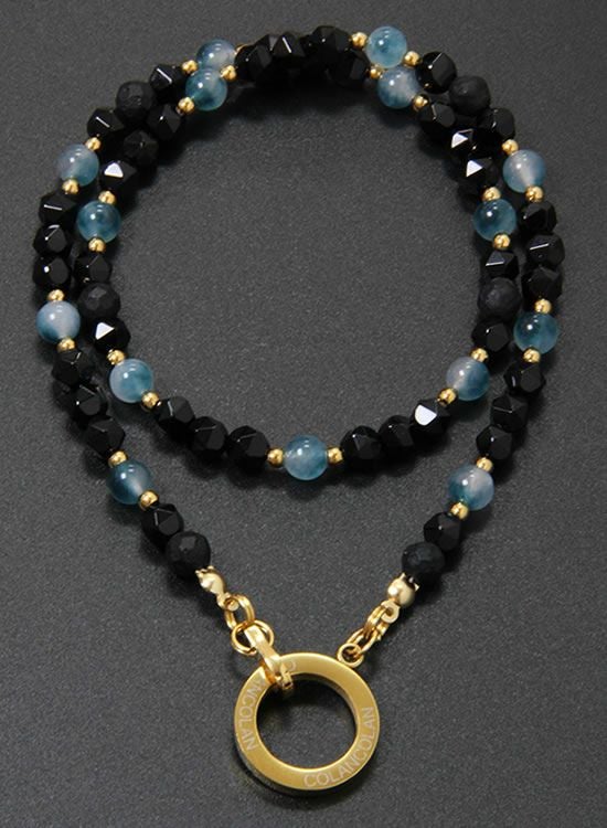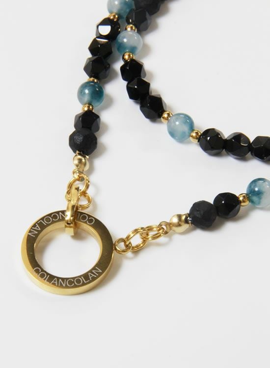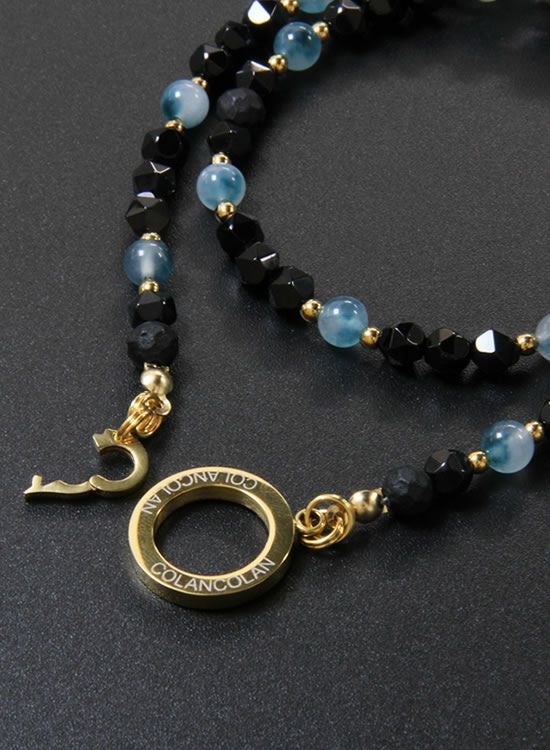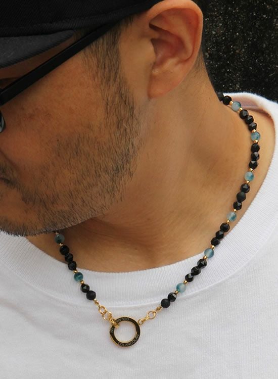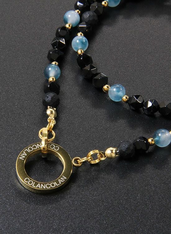 コランコランFORCE5(フォースファイブ) 6mmスターカットオニキス&翡翠ブルー (ゴールド・ブラック) ネックレス 【送料無料】