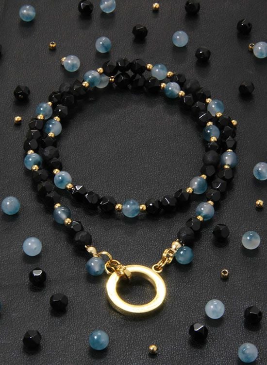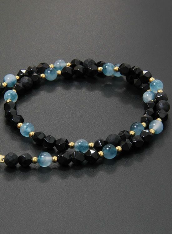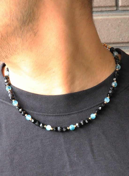 【新パーツ】【FORCE5】 6mmスターカットオニキス&翡翠ブルー (ゴールド・ブラック) ネックレス