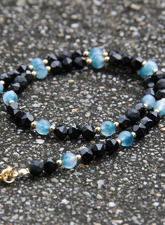 FORCEシリーズでも初採用となる『6mmスターカットオニキス』と『6mmの翡翠ブルー』で夏にピッタリの爽やかなネックレスをデザインしました。こんなの他では買えないでしょう!!透き通るような翡翠ブルーがとってもとってもいい仕事してくれてます!!