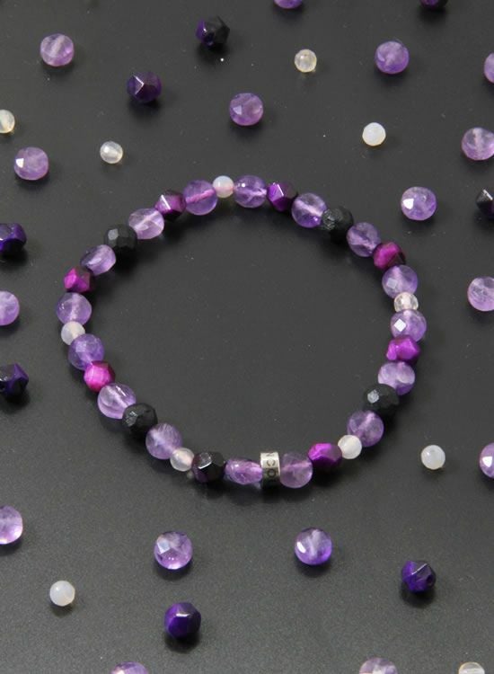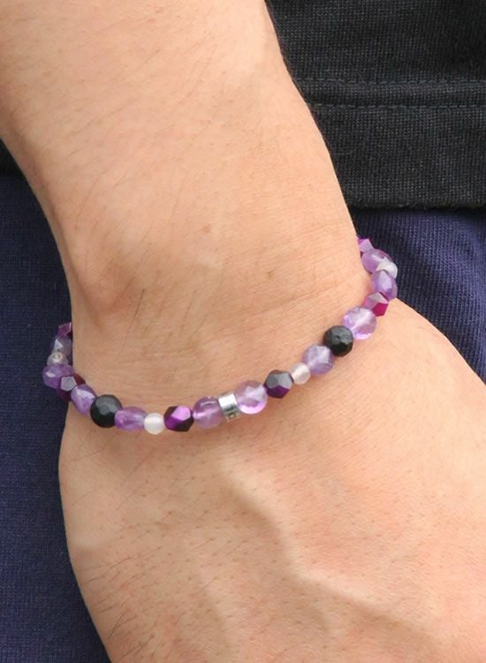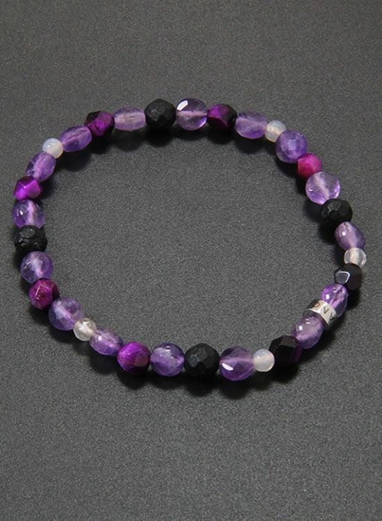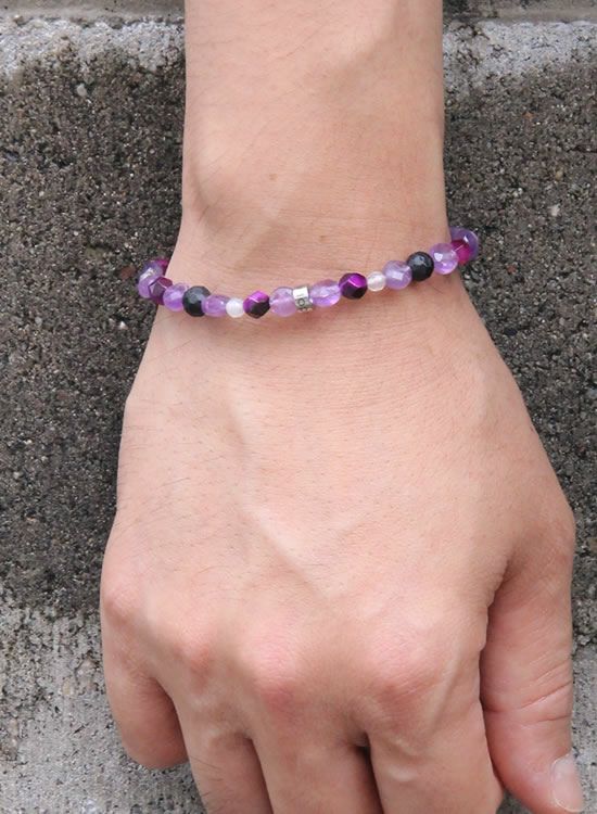 FORCE3 ブレスレット 6mmファセット多面カット アメジスト ゴムタイプ