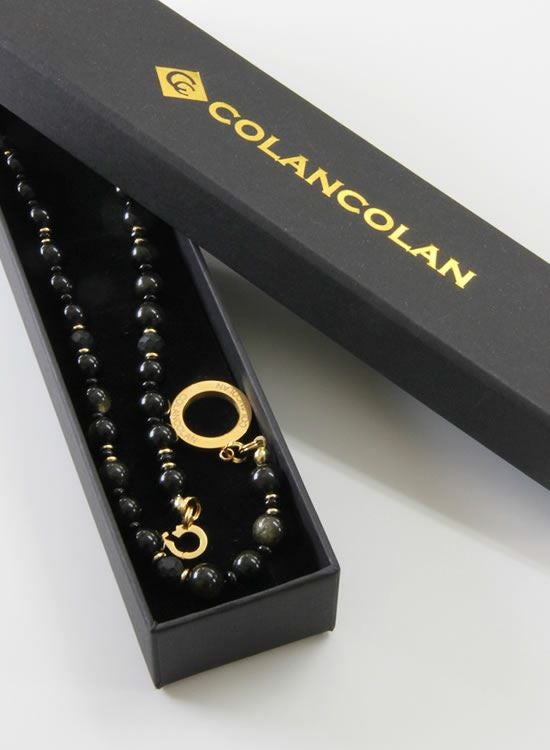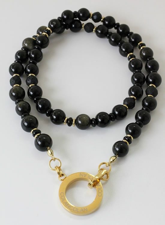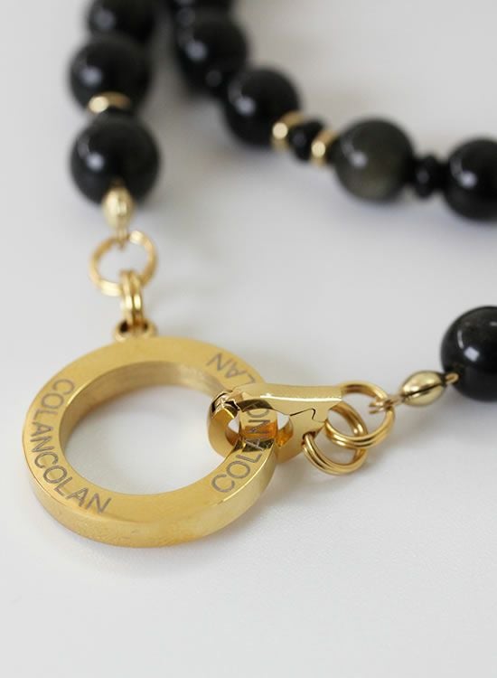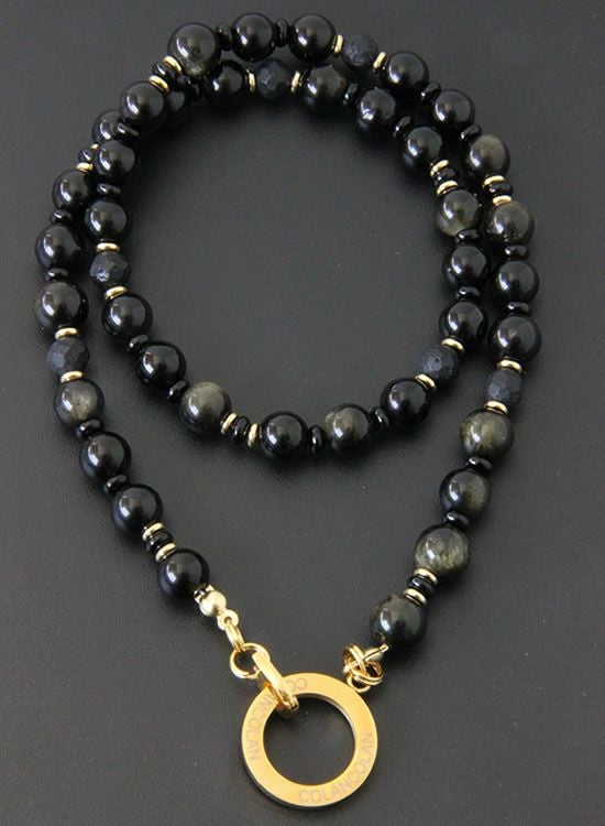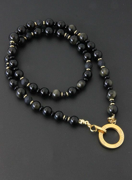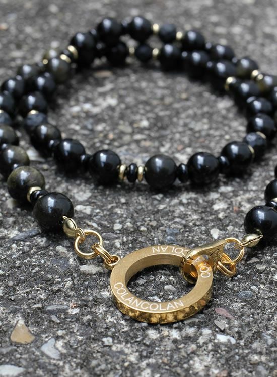 コランコランFORCE5(フォースファイブ) 8mmオブシディアン(黒曜石)ゴールド・ブラック ネックレス 【送料無料】