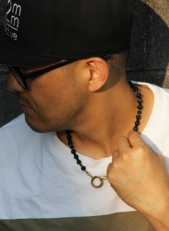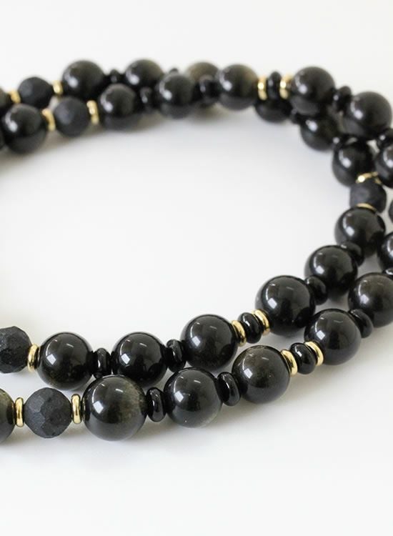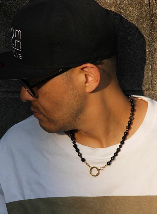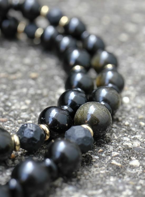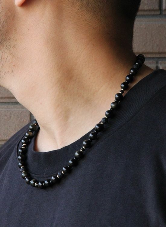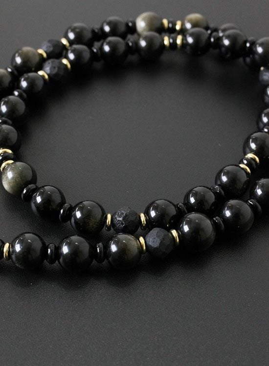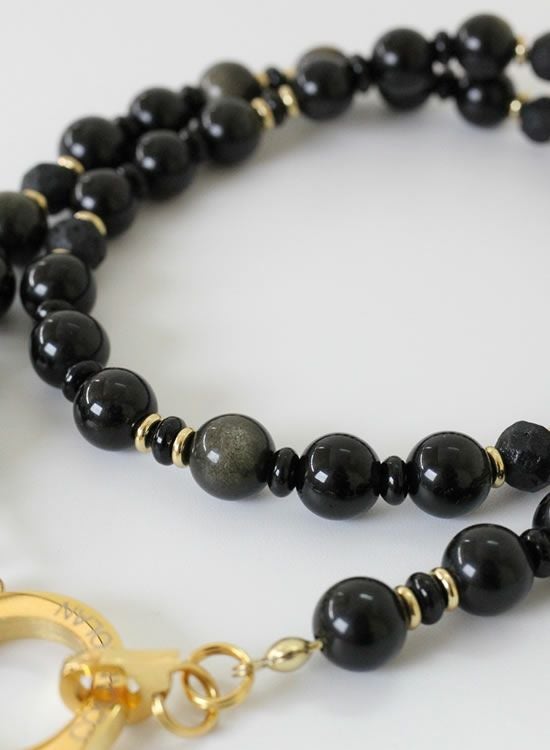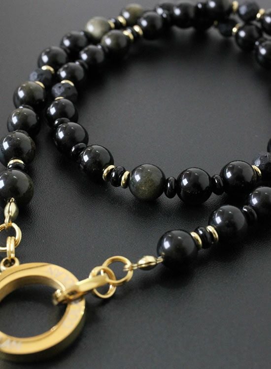 【新パーツ】【FORCE5】 8mmオブシディアン(黒曜石)ゴールド・ブラック ネックレス