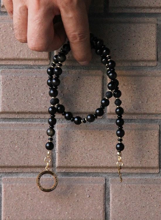 9月はまだ暑いしでも冬を少し見据えた商品がいいんじゃないかと思いまして!黒系の石で取り扱った事が無い石っと言う事で『オブシディアン(黒曜石)』を採用しました。すっごく使いやすいネックレスに仕上がってます。