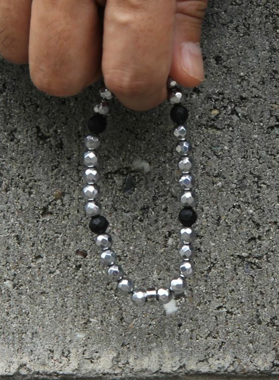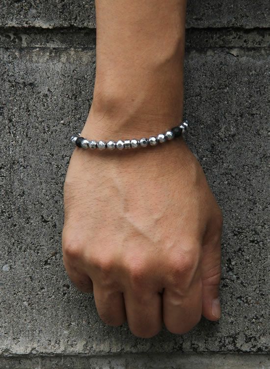 金属に見えるけど実は石なんです!ヘマタイトと言う石にシルバーの塗装をしてあります。今回はそのシルバーヘマタイトをメインに使ってシルバーアクセに見えるようなブレスレットを作ってみました。こう見えてシッカリとCOLANCOLANなのでマイナスイオンもシッカリ出てます。こういうの待ってた人も多そう♪