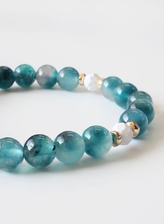 暖かくなってきましたからね~!この透き通るようなブルーが翡翠の魅力です!涼し気で夏にピッタリです。コレくらい明るくて元気なブレスレット着けて夏をエンジョイしてほしい!!ぜひ夏アクセに加えませんか?