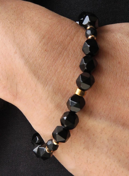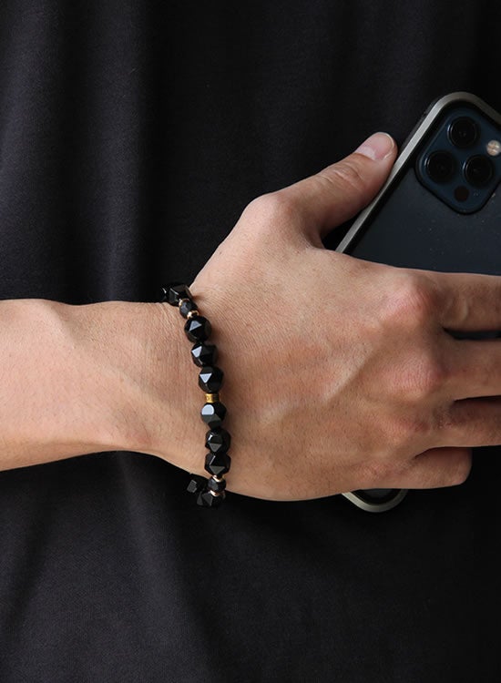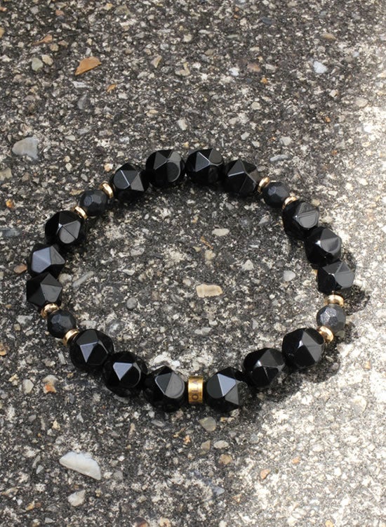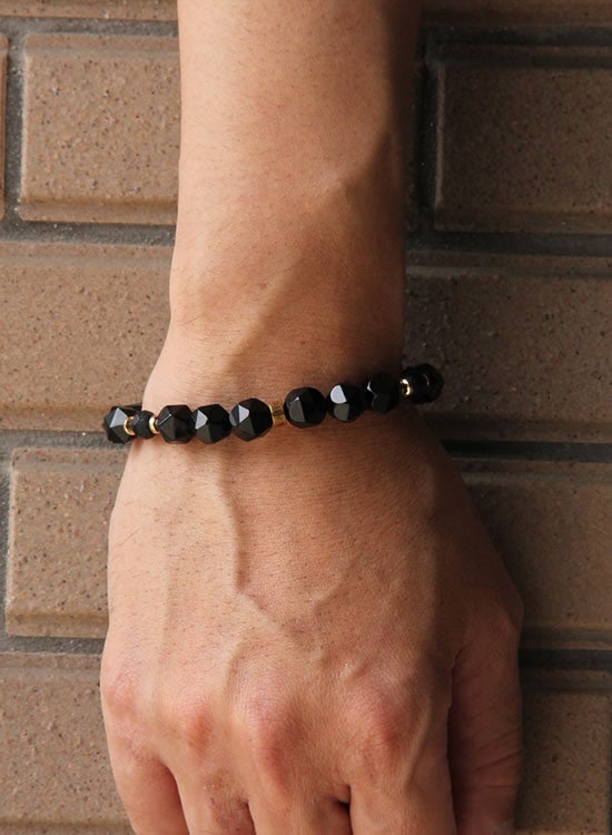 FORCE3 ブレスレット 10mm 角ブラックオニキス ゴムタイプ