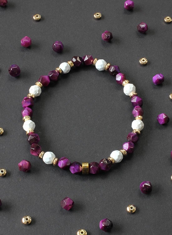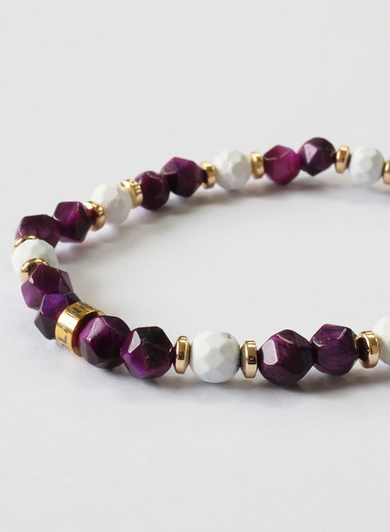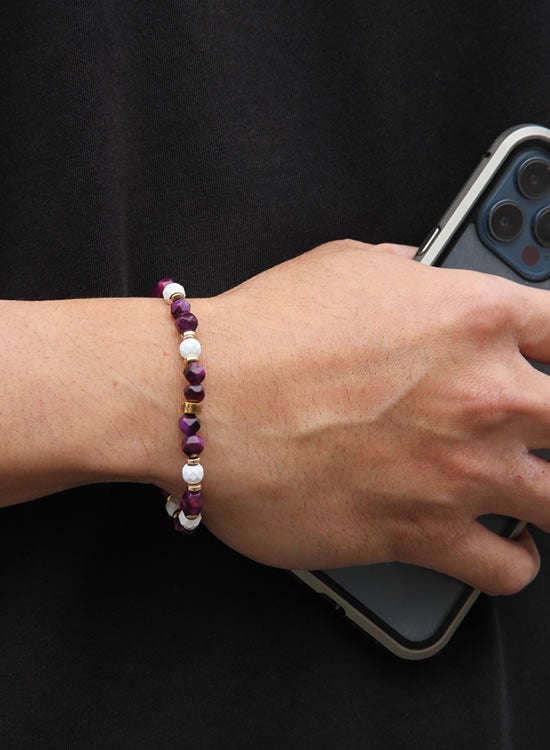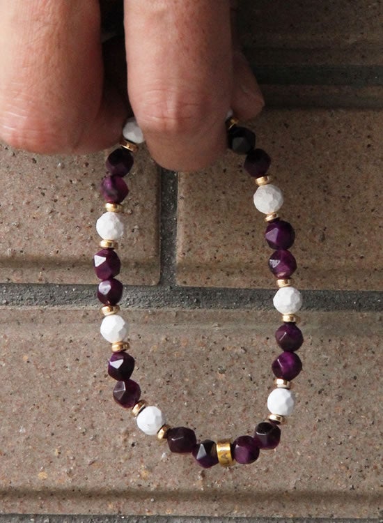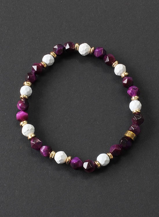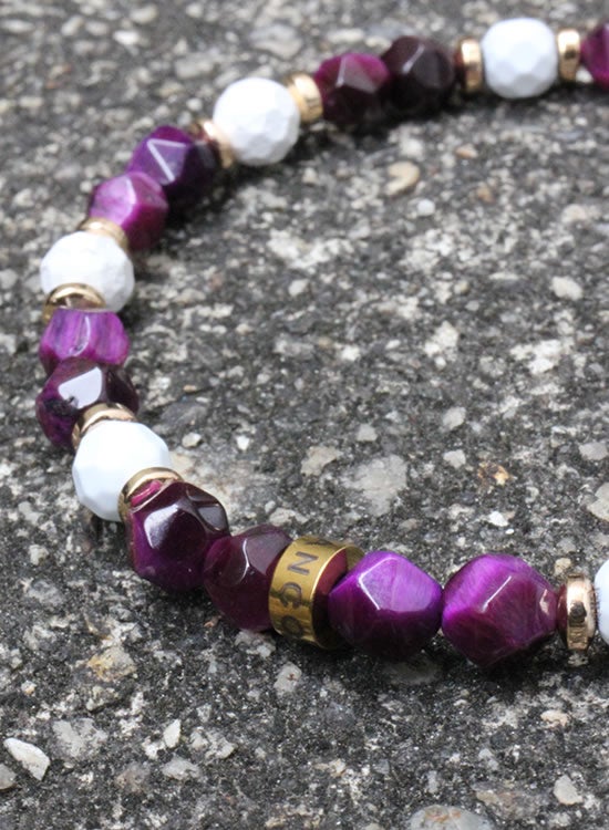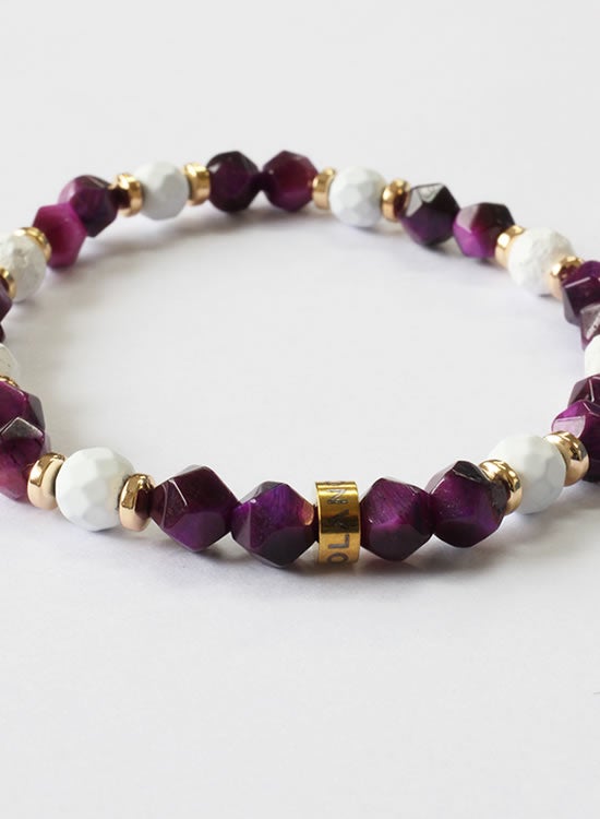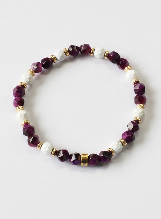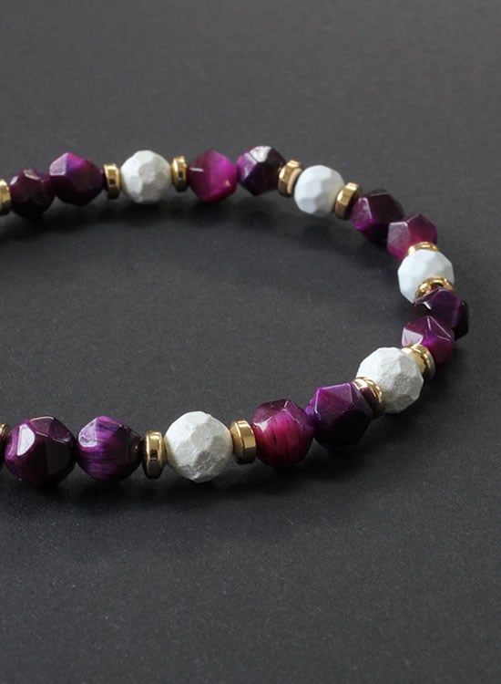 FORCE3 ブレスレット 6㎜ 角・パープルタイガーアイ ゴムタイプ