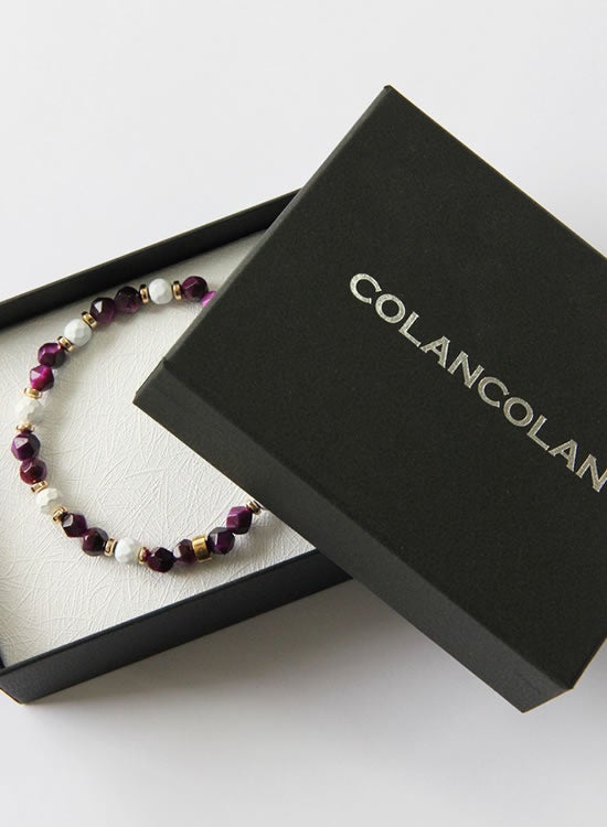 コランコランFORCE3(フォーススリー)ブレスレット 6㎜角・パープルタイガーアイ ゴムタイプ
