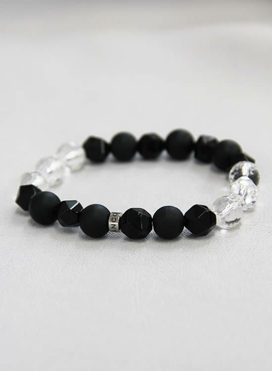 数量限定テスト販売FORCE4ブレスレット・水晶&ブラックMIX 【伸ばして脱着するゴムを使ったブレスレット】