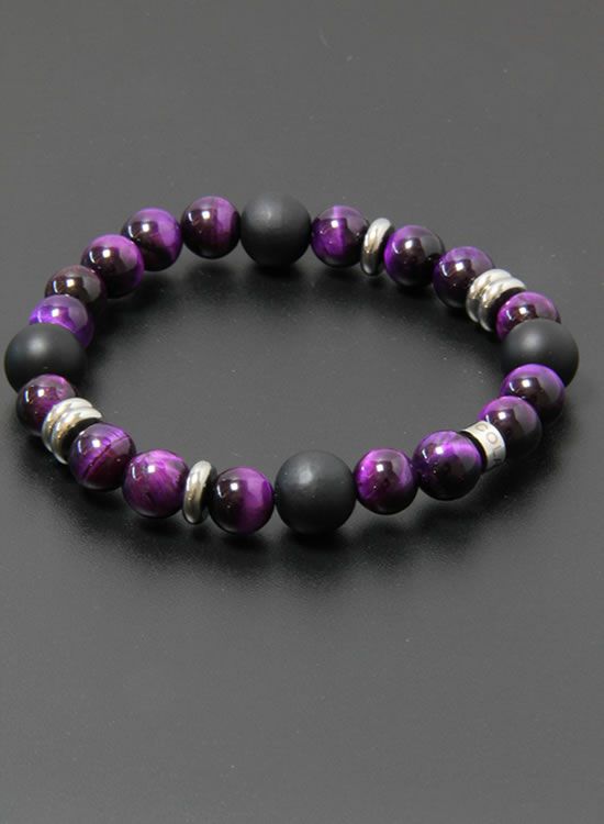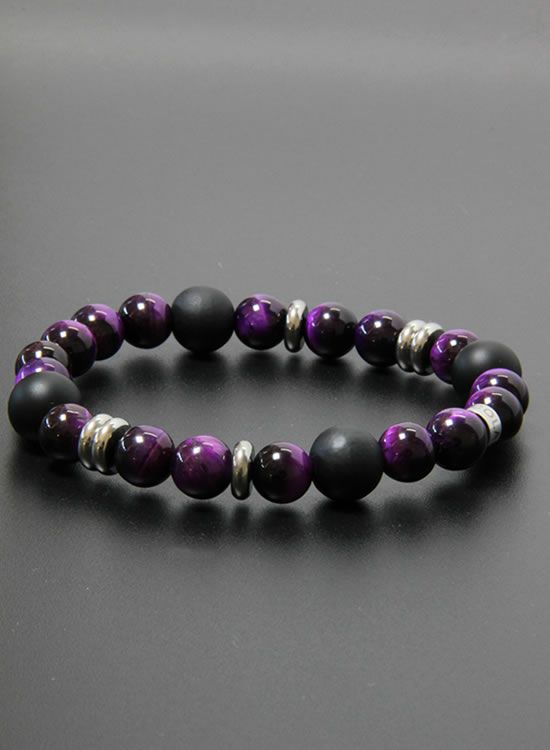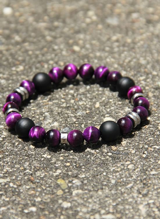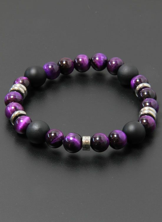 FORCE4ブレスレット・8mmパープルタイガーアイ 【伸ばして脱着するゴムを使ったブレスレット】