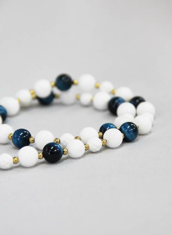 【FORCE3】8mmホワイトジェイド&ブルータイガーアイ ネックレス