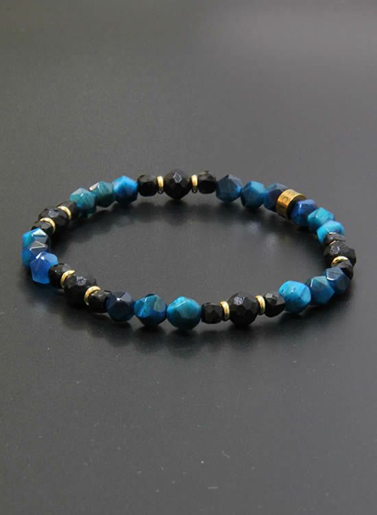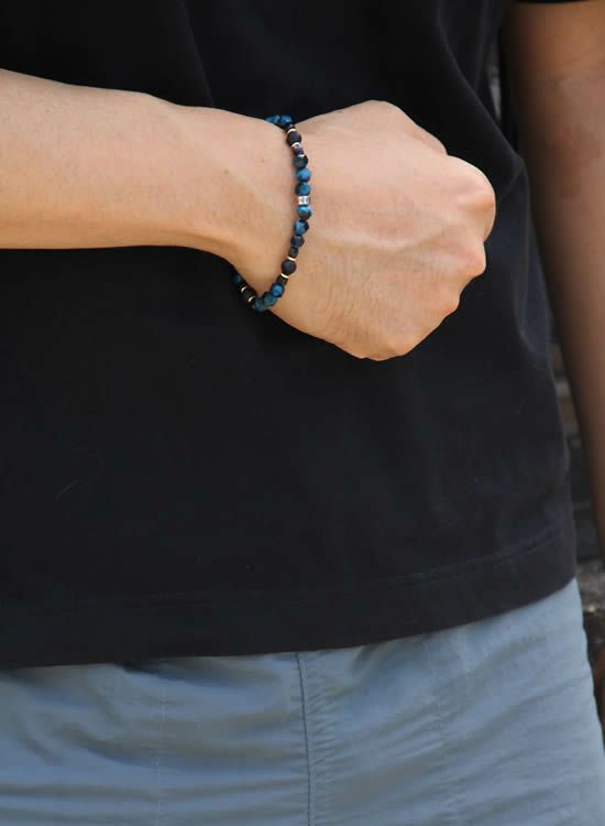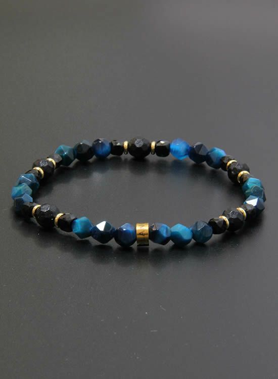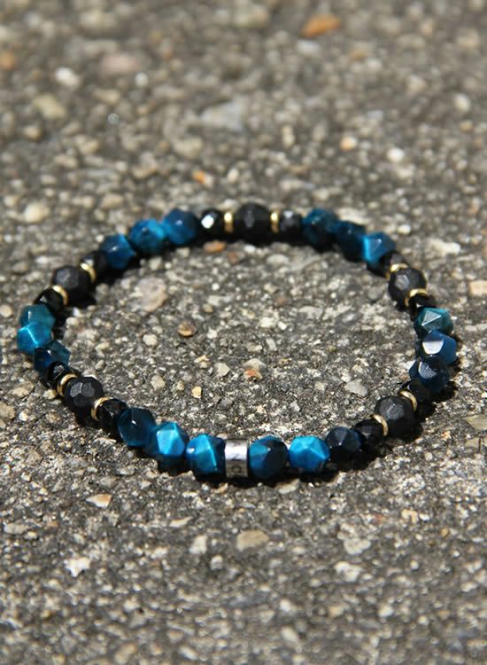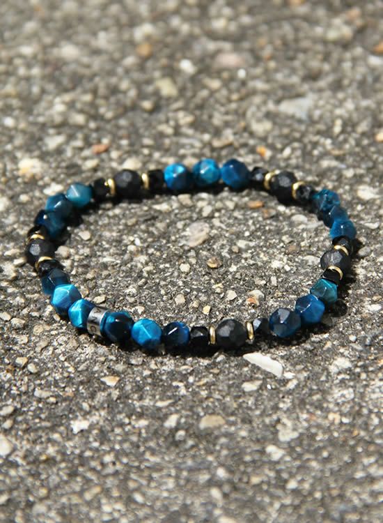 なんで今までやらなかったのか不思議なんですが!6mmの角ブルータイガーアイでブレスレットを作りました。店長の友人がデザインしてみたいと会社に遊びにきた時に作ったブレスを改良して商品化になりました。常に先入観が無いフラットなアイディアは大切にしなきゃいけないと思った。細目ブレスなんだけど丁度いい大きさで凄く使いやすいと思います!!ナイスデザイン!! コチラの石はゴムを通す穴が小さくなっていて、通常のFORCE4の10mm玉ブレスレットに比べて通しているゴムが細くなっている為にゴムの強度を確保できませんでした。それでもゴムタイプが楽で使いやすいのが魅力で商品化に至りました。10mm玉のブレスレットより少し丁寧に扱って頂けると嬉しく思います。※よりゴムを伸ばさないように慎重に取扱い頂くようお願いします。また、ゴムのささくれ等を見つけた場合は早急にゴム交換をおススメします。