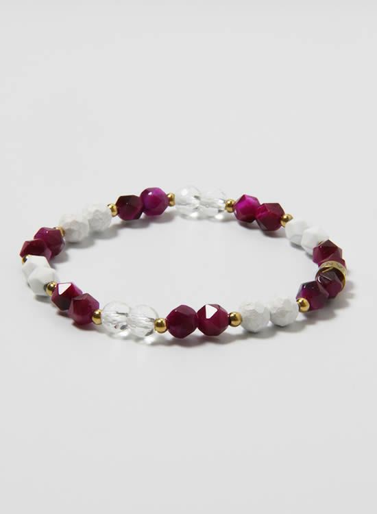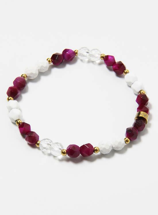 お客様からのリクエストで誕生した『6mm角・ピンクタイガーアイのブレスレット』になります。これのネックレス版があるのですが、ちょっとだけアレンジを加えてブレスレットを組んでみました。水晶が入ってる事が凄くいいんです!肌に馴染むようなピンクなので女性は勿論!男性にもぜひトライして欲しいアイテムです。 コチラの石はゴムを通す穴が小さくなっていて、通常のFORCE4の10mm玉ブレスレットに比べて通しているゴムが細くなっている為にゴムの強度を確保できませんでした。それでもゴムタイプが楽で使いやすいのが魅力で商品化に至りました。10mm玉のブレスレットより少し丁寧に扱って頂けると嬉しく思います。※よりゴムを伸ばさないように慎重に取扱い頂くようお願いします。また、ゴムのささくれ等を見つけた場合は早急にゴム交換をおススメします。