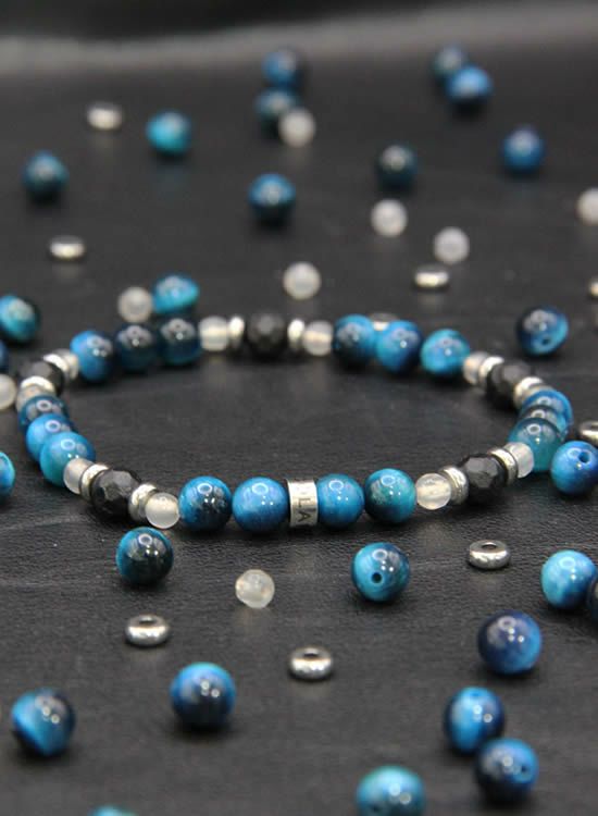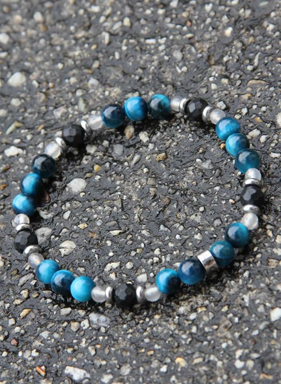 ブルータイガーアイをシンプルにさり気なく着けられるように6mm玉でブレスレットを作りました。長袖を着る季節になっても袖口からチラッと見えるだけでインパクトがあるブレスレットに仕上がったと思います。