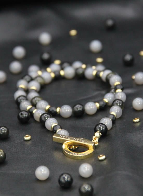 【COLANCOLANのFORCE3の新作】8mm黒曜石&グレーアゲート(ゴールド・ブラック) ネックレス
