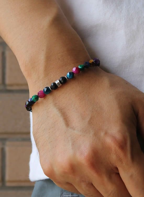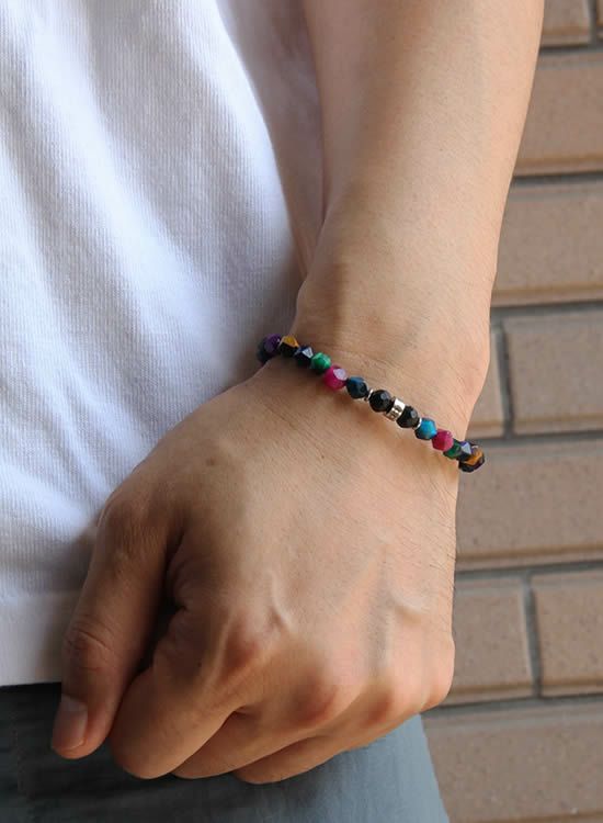 FORCE3 ブレスレット 6mm角レインボー ゴムタイプ