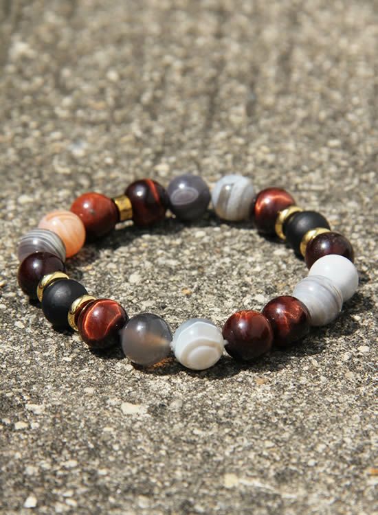 FORCE4ブレスレット レッドタイガーアイ&ボツワナアゲート 【伸ばして脱着するゴムを使ったブレスレット】